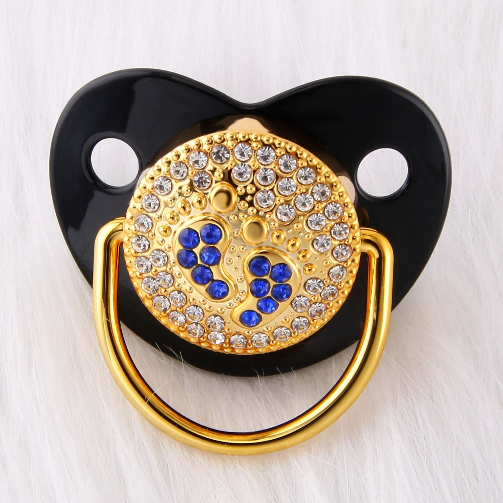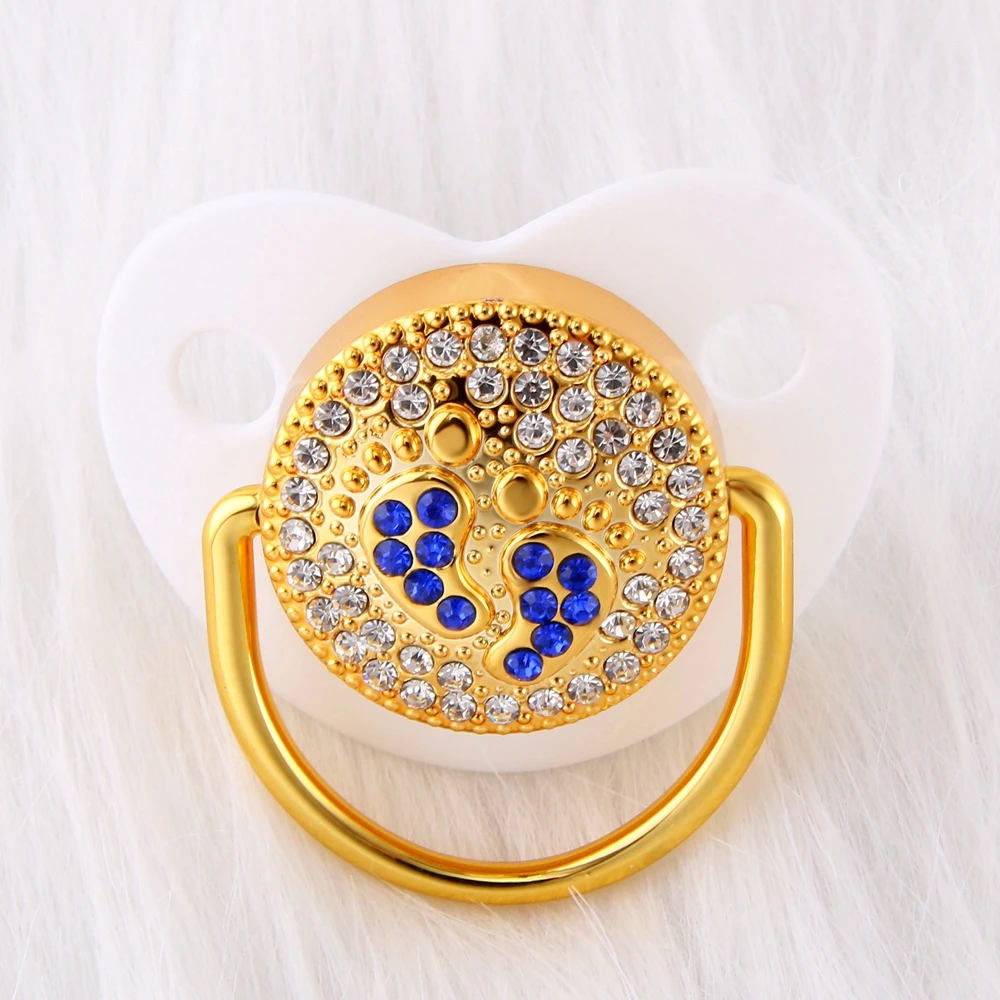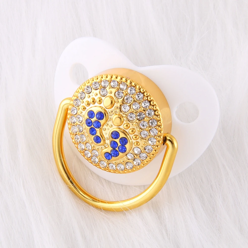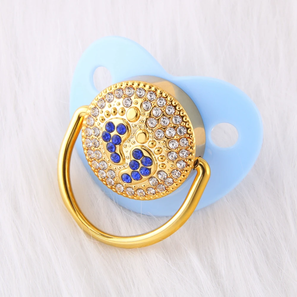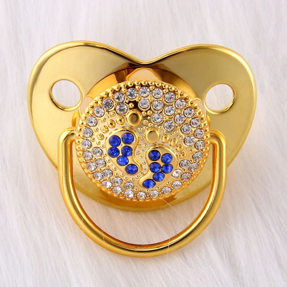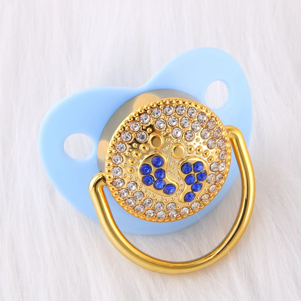 Роскошная золотая пустышка для детей от 0 до 18 месяцев, Синие стразы, блестящая пустышка с блестками, пустышка для детского душа, подарки