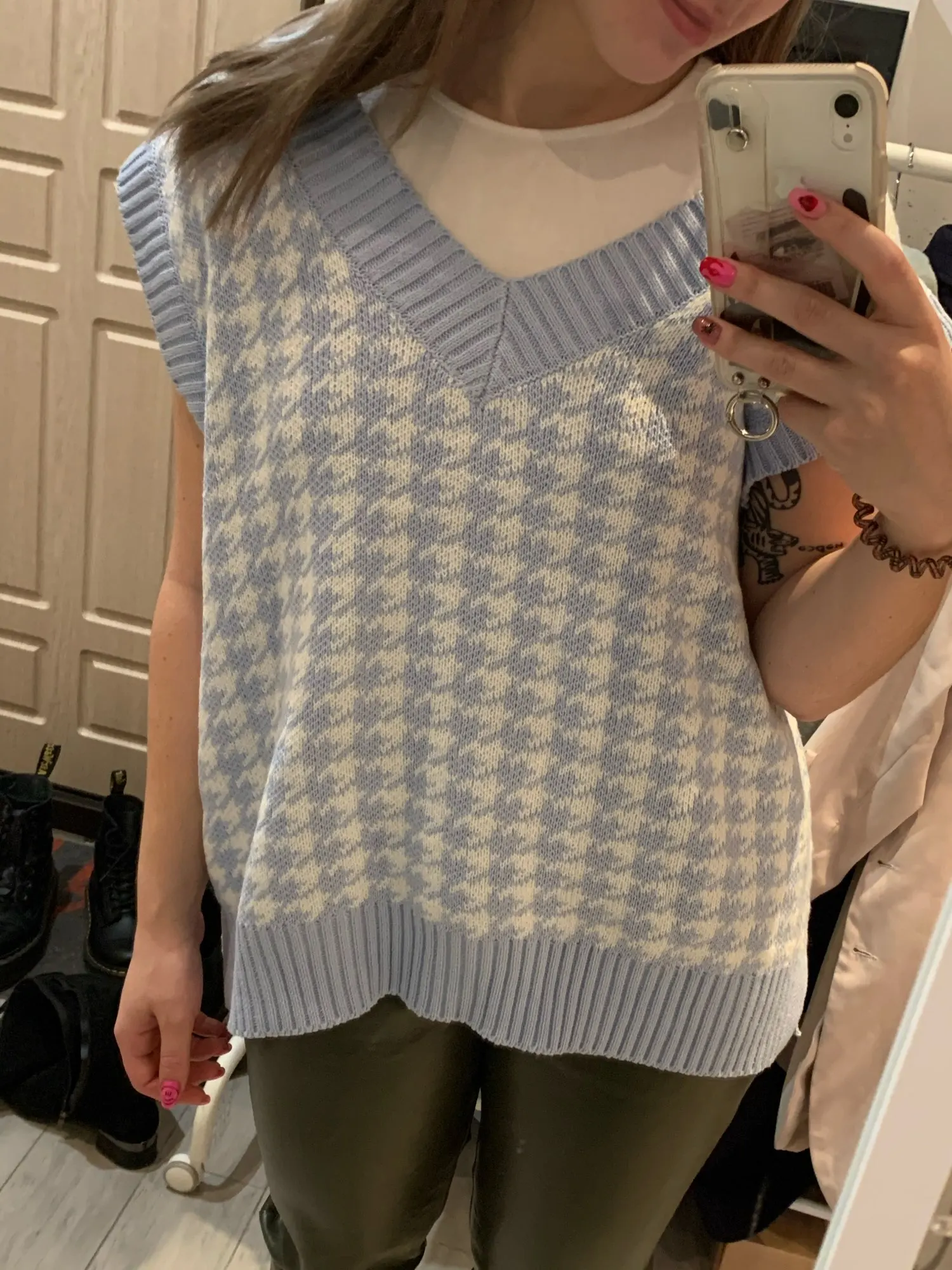 Пуловер женский вязаный, с v-образным вырезом, зима свитер жилет без рукавов
