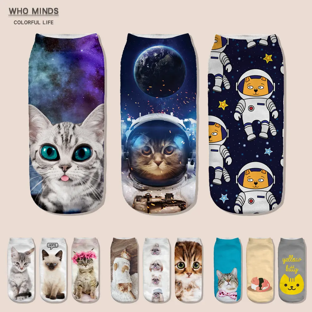 Новинка 3 шт.лот skarpetki носки с котом милые носки с цветочным принтом женские Носки с рисунком Харадзюку Смешные хлопковые модные милые белые носки до щиколотки icon star icon star icon star icon star icon star