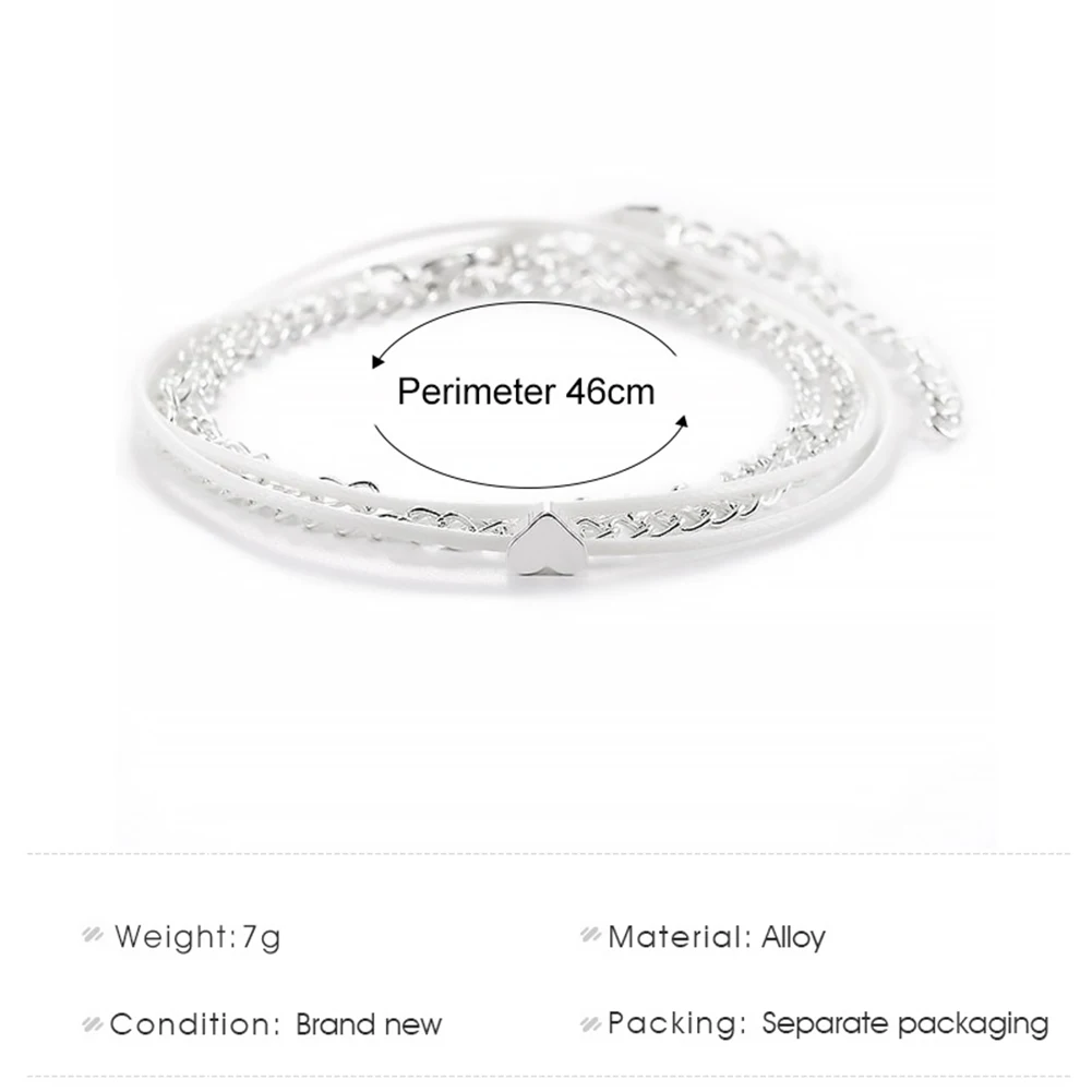 Особенности:Эта модная цепочка для ног может сочетаться с юбкой, платьем, рубашкой, пальто разных цветов.Изготовлен из прочного материала, безопасный и легкий.Подходит для свадьбы, вечерние, ежедневного использования.Ножной браслет со специальным дизайном обновит ваше личное очарование, привлекая других глазОтличный подарок для вашей семьи или любимого человека, как Рождественский подарок, подарки на день рождения, юбилейные подарки, свадебные подарки или другие праздничные подарки.Примечание:Фактический цвет может отличаться от того, что светильник отличается от изображения из-за различных эффектов монитора и светильникВозможны отклонения на 1-3 см вследствие измерений вручнуюСпецификация:Материал: сплавРазмер: Периметр: 46 см