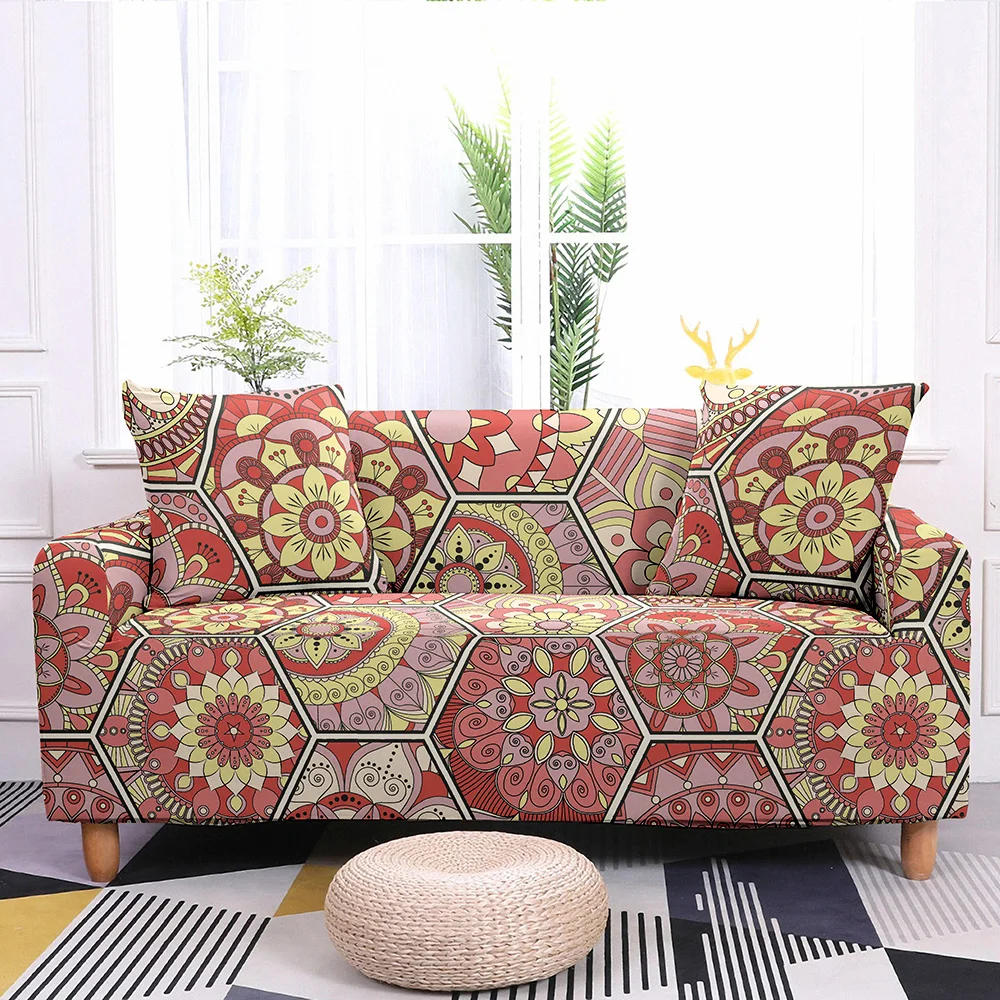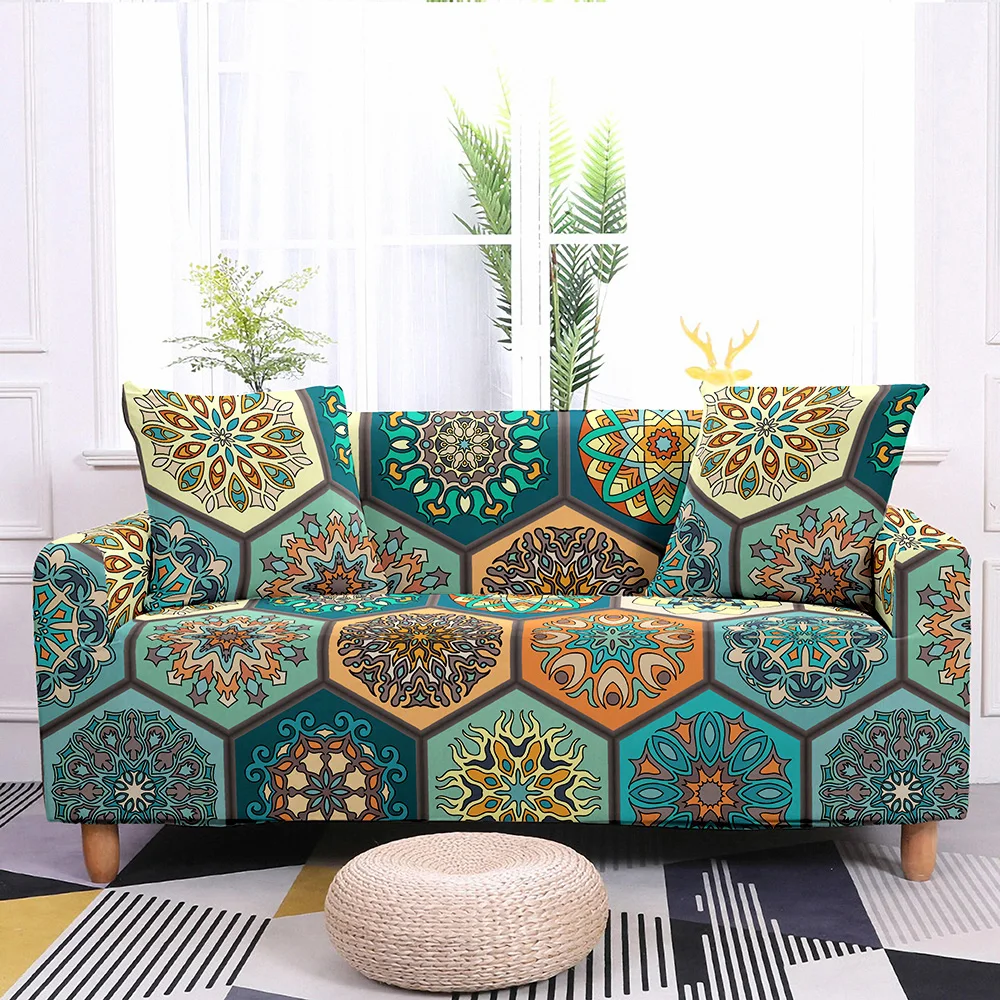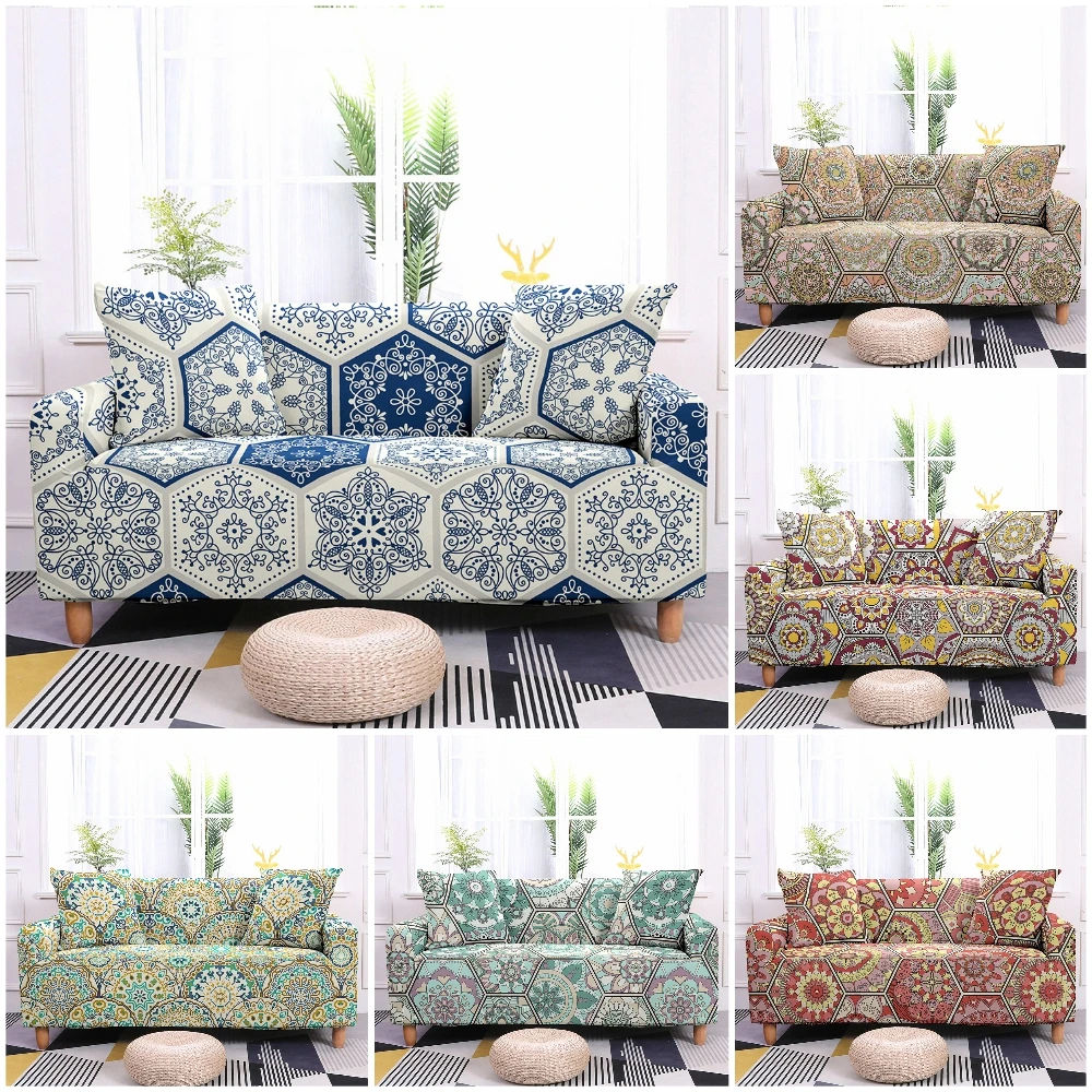 Шестиугольный чехол для дивана с геометрическим рисунком, эластичные винтажные Чехлы для дивана с цветочным рисунком для гостиной, мандала чехол для секционного дивана 1234 местный