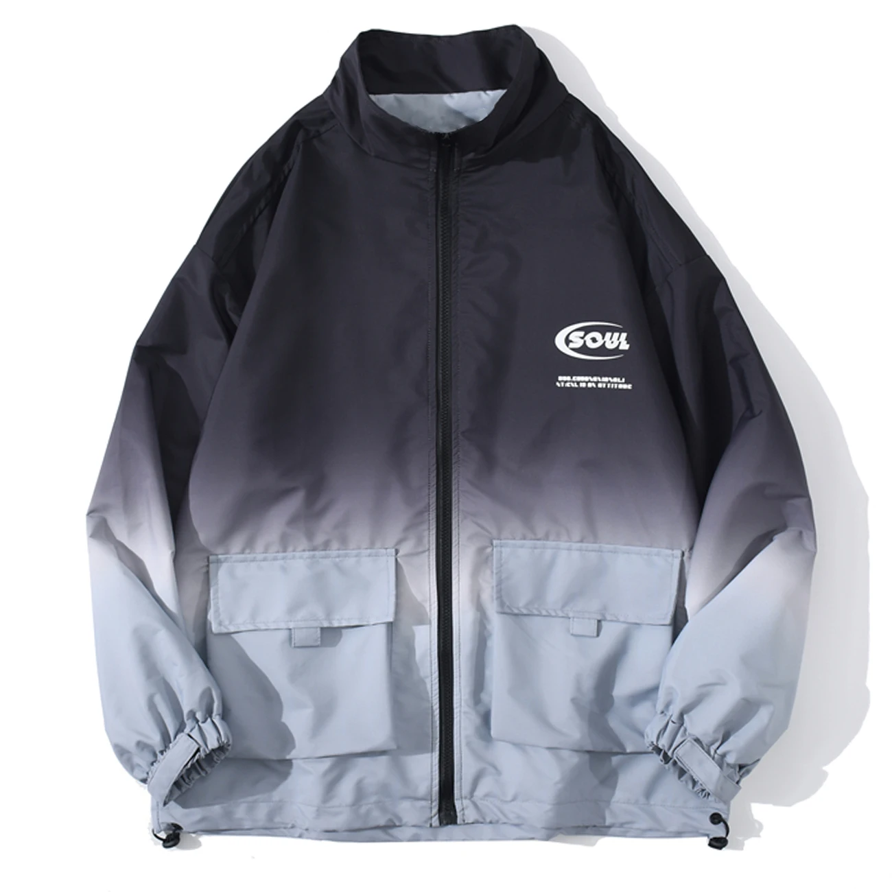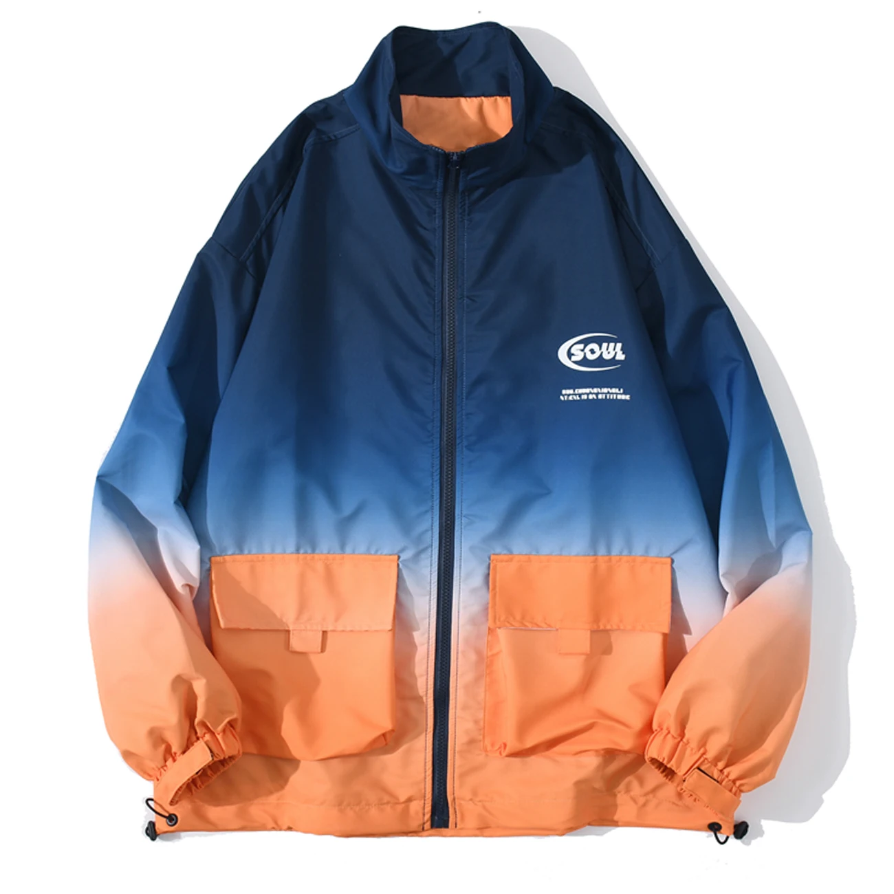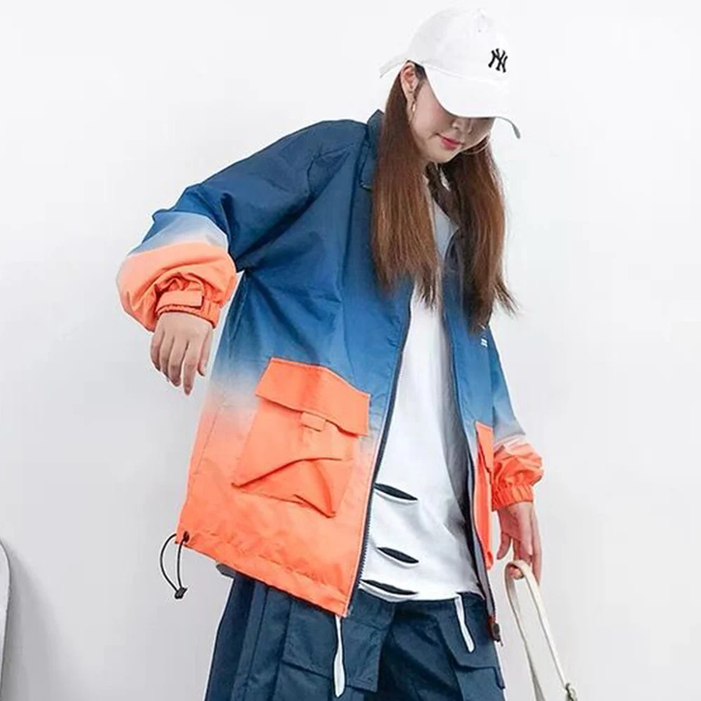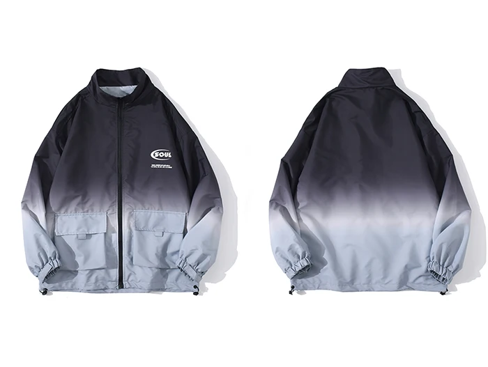 Мужская ветровка с градиентными вставками, с карманами, в стиле хип-хоп