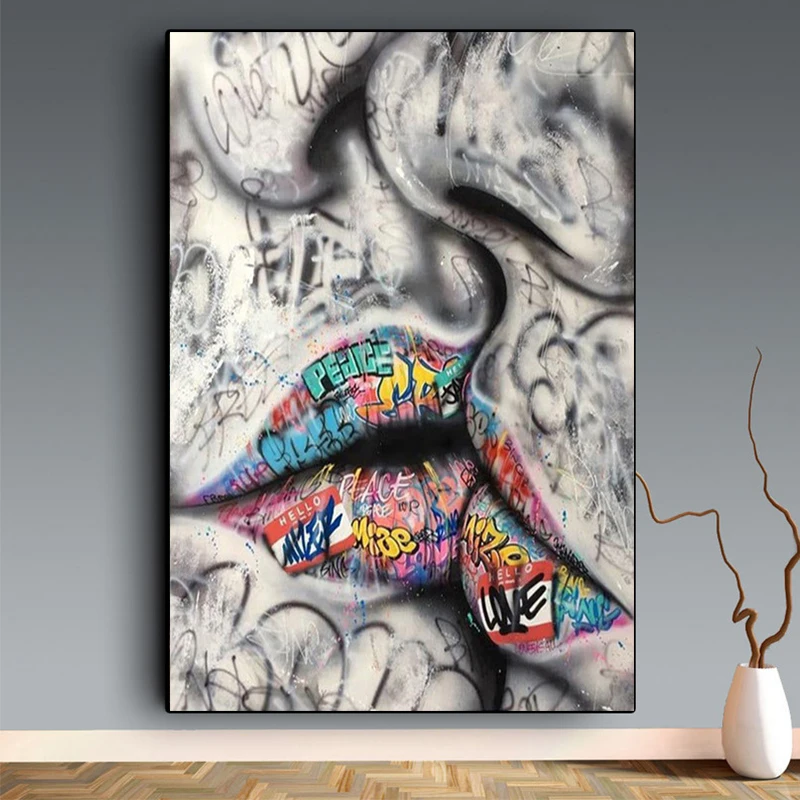 Картина на холсте с изображением влюбленных граффити, постеров и принтов, абстрактная Настенная картина для гостиной, домашний декор