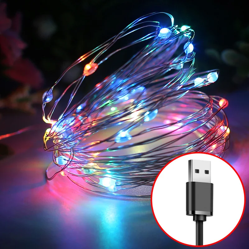 DC 5В USB гирлянды светодиодные светильник s 1 м 5 м 10 м серебряной проволоки Водонепроницаемый Фея светильник Гирлянда для дома Рождество Свадебная вечеринка украшения