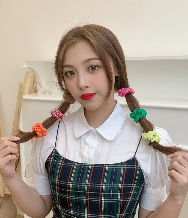 56 шт.компл. из шнурка в клетку, круглая резинка для волос в виде свиной Intestine, аксессуары для волос в стиле ретро
