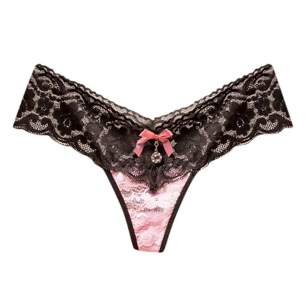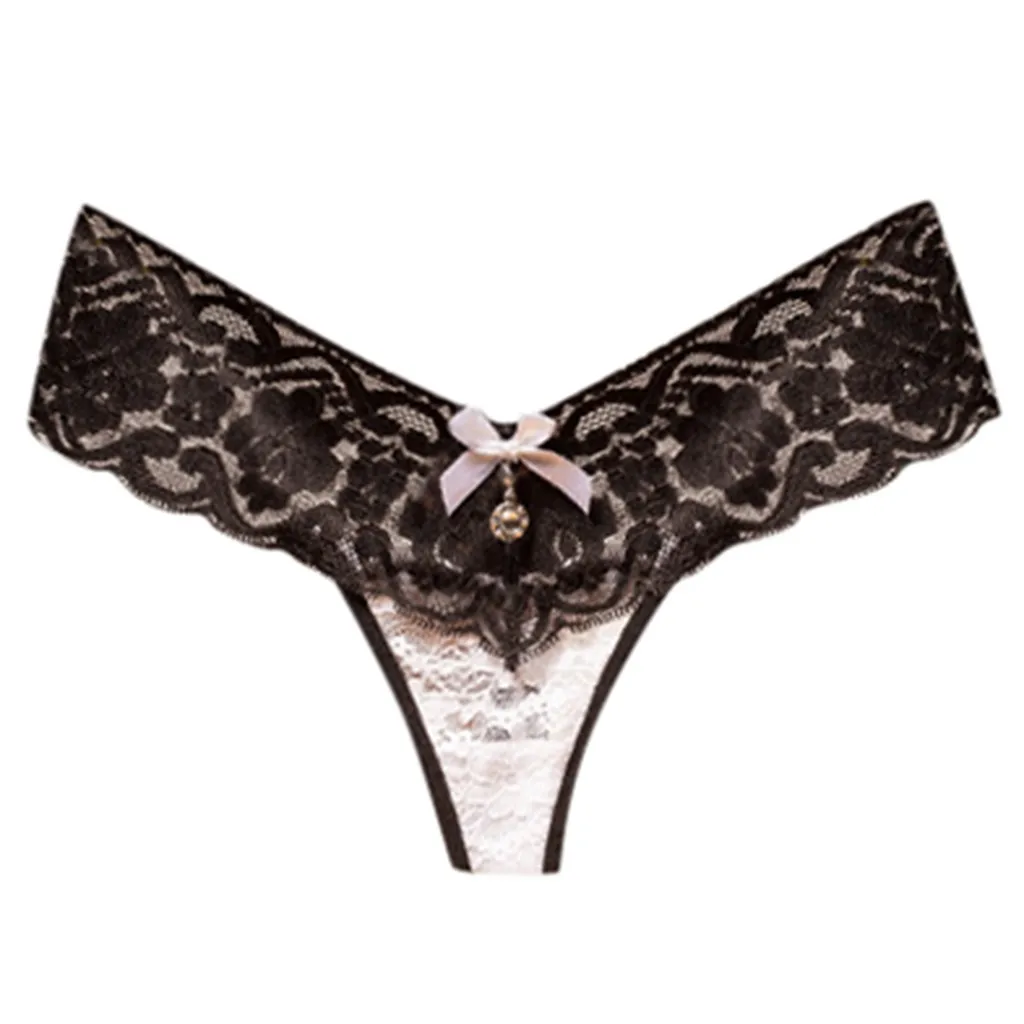 Женские кружевные трусики, нижнее белье с бантом и Т-образной спинкой, женские трусики танга, женские стринги с вырезами и низкой талией, Хило Танга