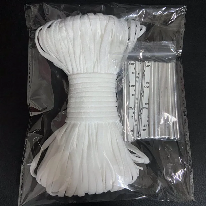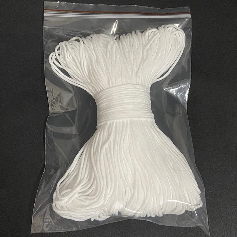 Тонкие круглые эластичные ленты 3 мм, 50 метров, белые, черные, эластичные ленты для масок, одежды, эластичная лента для рукоделия, Швейные аксессуары