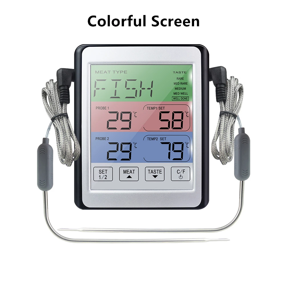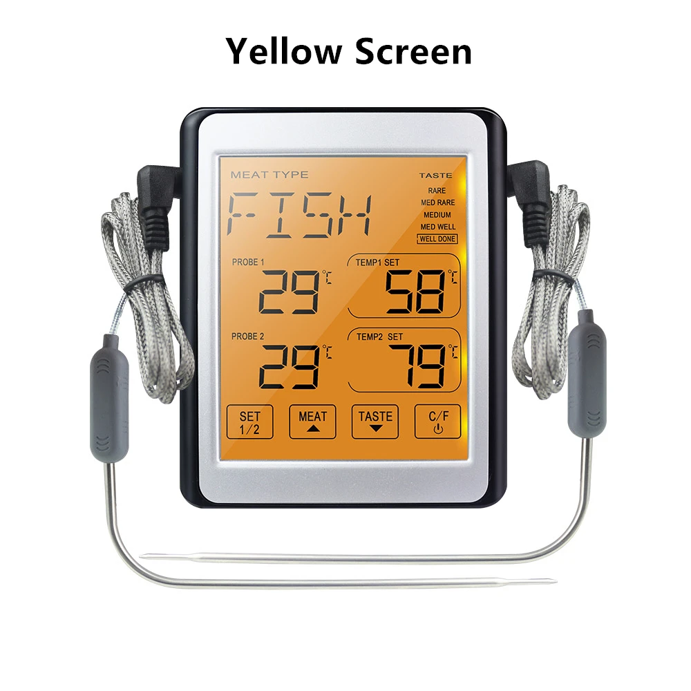 Интеллектуальный пищевой термометр, измеритель температуры для барбекю, мяса, приготовления пищи с двойным зондом, индивидуальная сигнализация СВЕТОДИОДНЫЙ светодиодная подсветка, дисплей C F