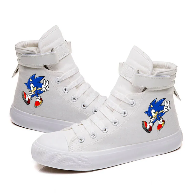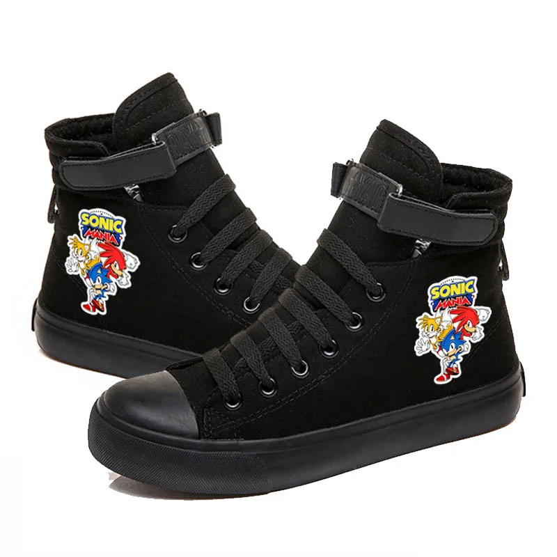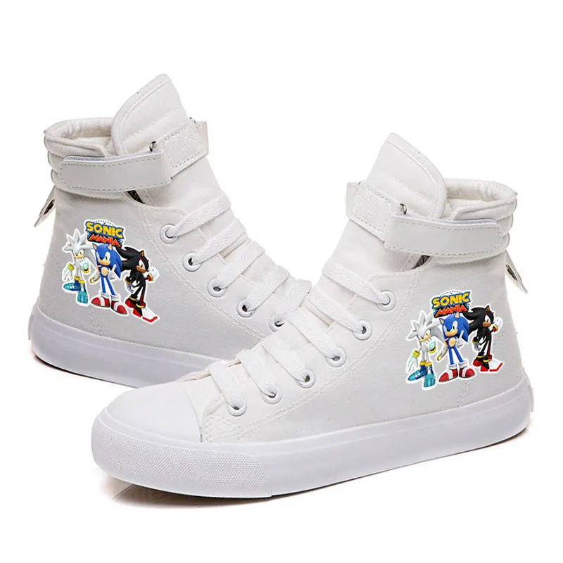 Холщовые кроссовки Kawaii Sonic с высоким верхом и плоской подошвой, Повседневные Дышащие Кроссовки унисекс в стиле хип-хоп на шнуровке для мальчиков и девочек