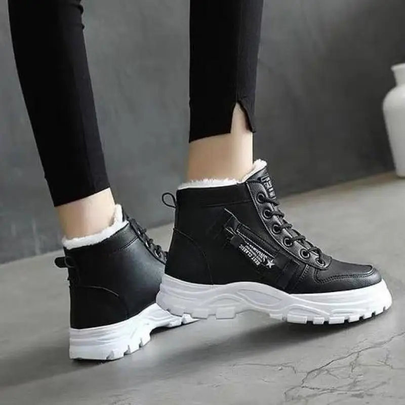 Женские зимние кроссовки с теплым мехом в Корейском стиле