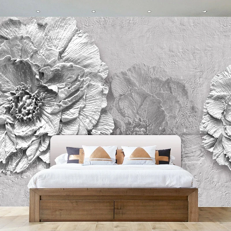 Настенные росписи на заказ, 3D стереоскопические белые цветы для сп...