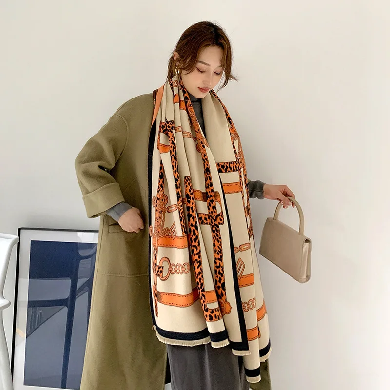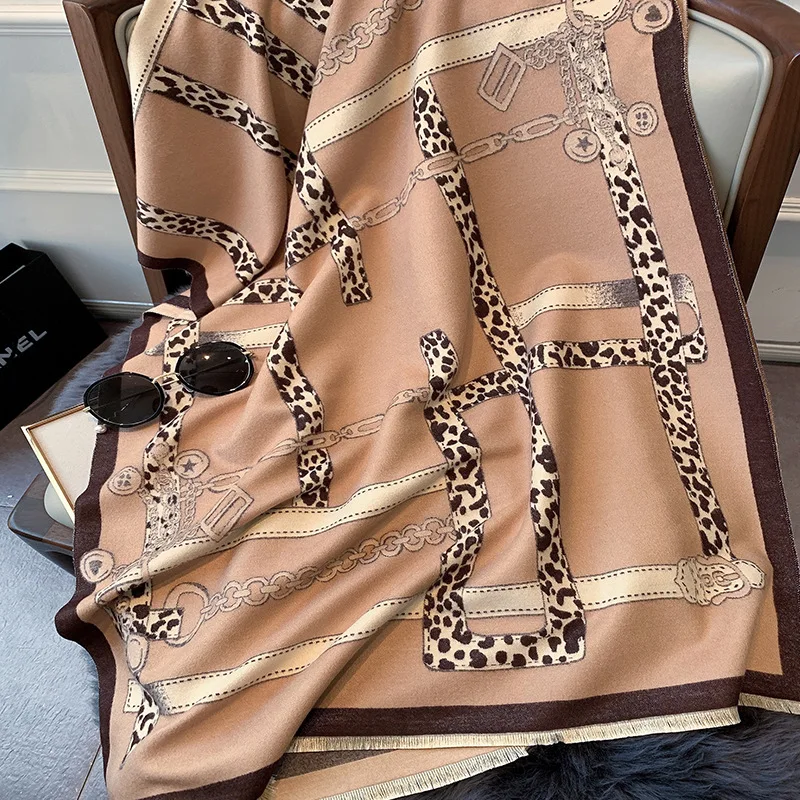 2020 роскошный кашемировый шарф Леопардовый принт с цепью брендовые...
