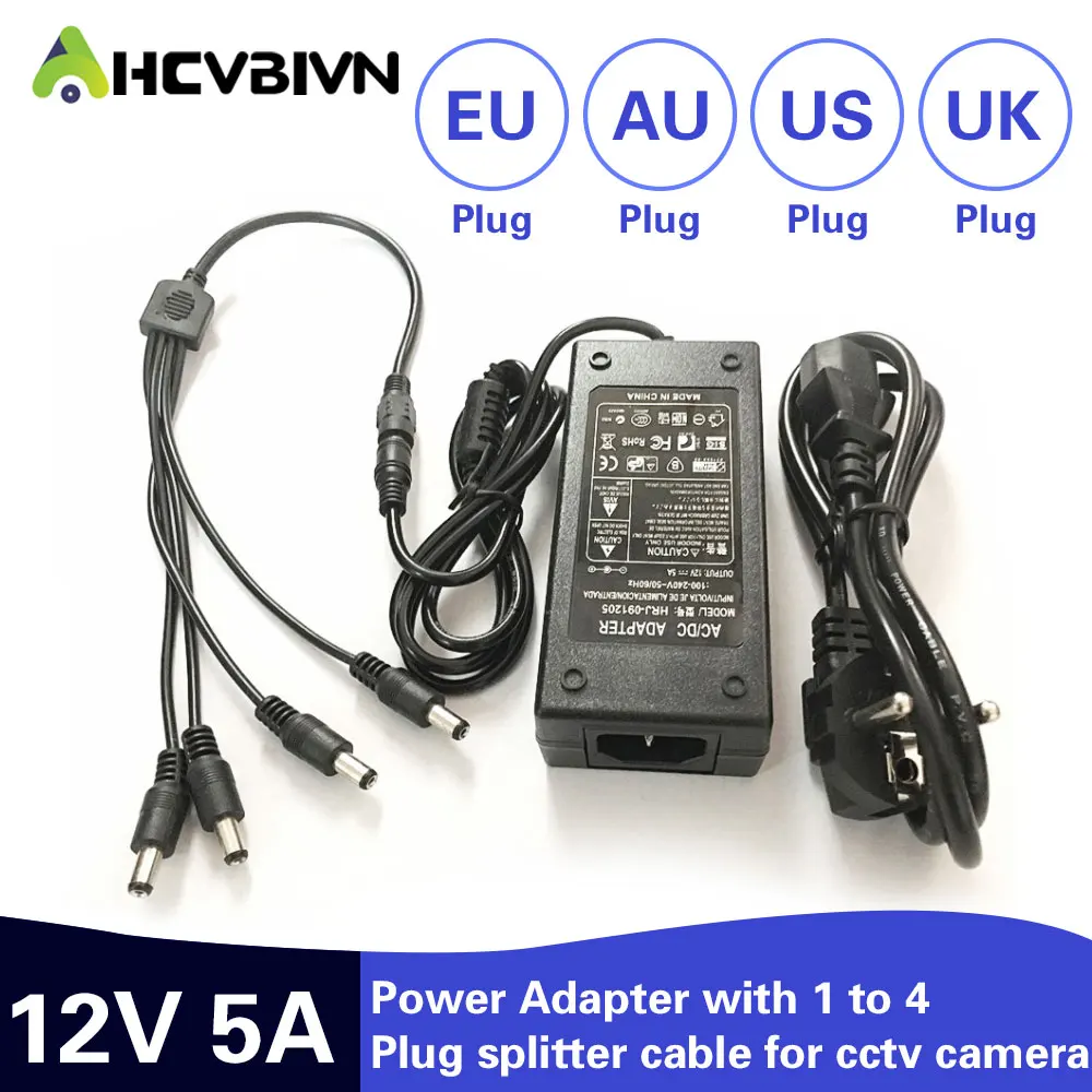 AHCBIVN 12V 5A 4 порта CCTV камера AC Адаптер Блок питания для камеры видеонаблюдения