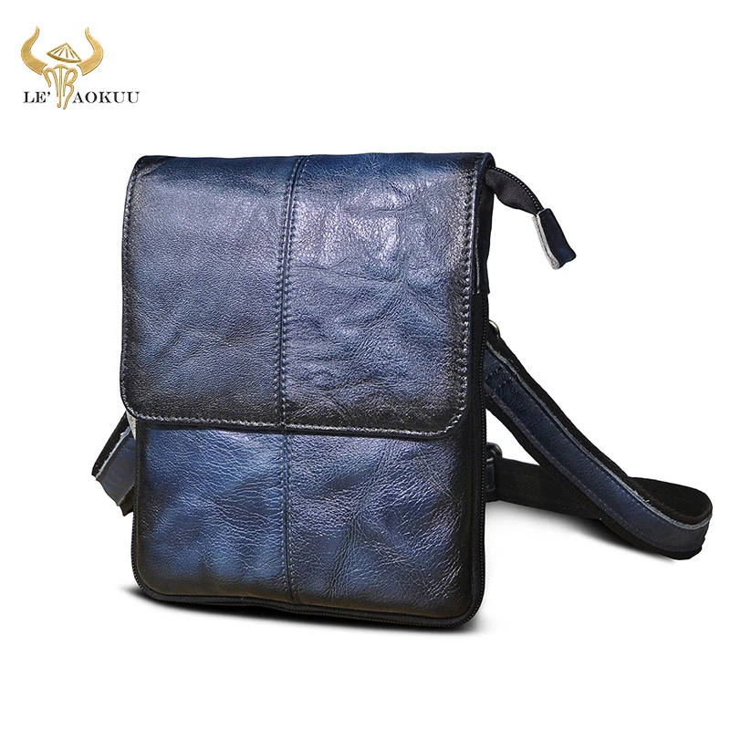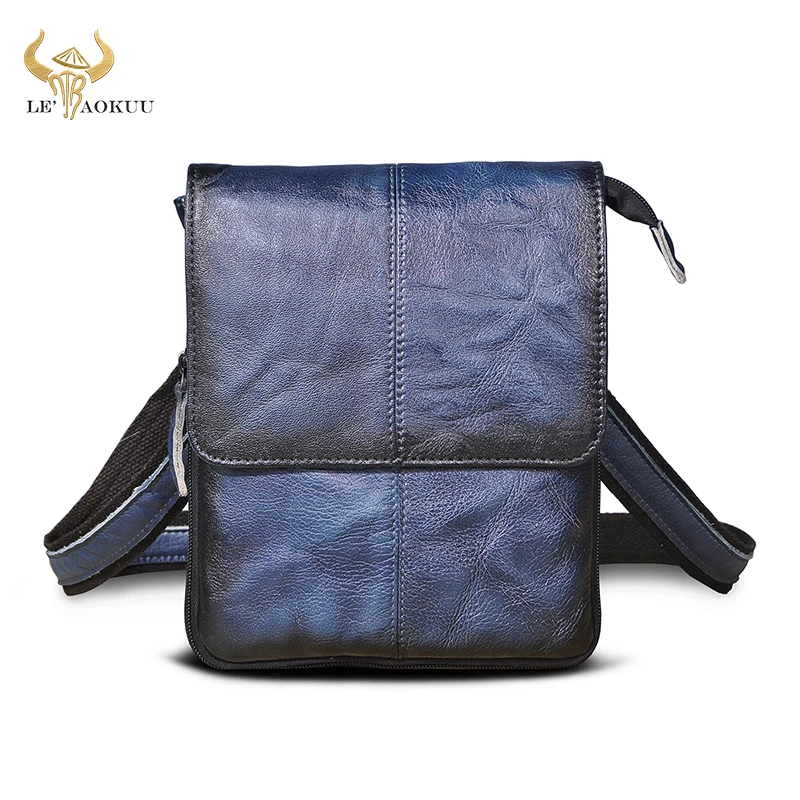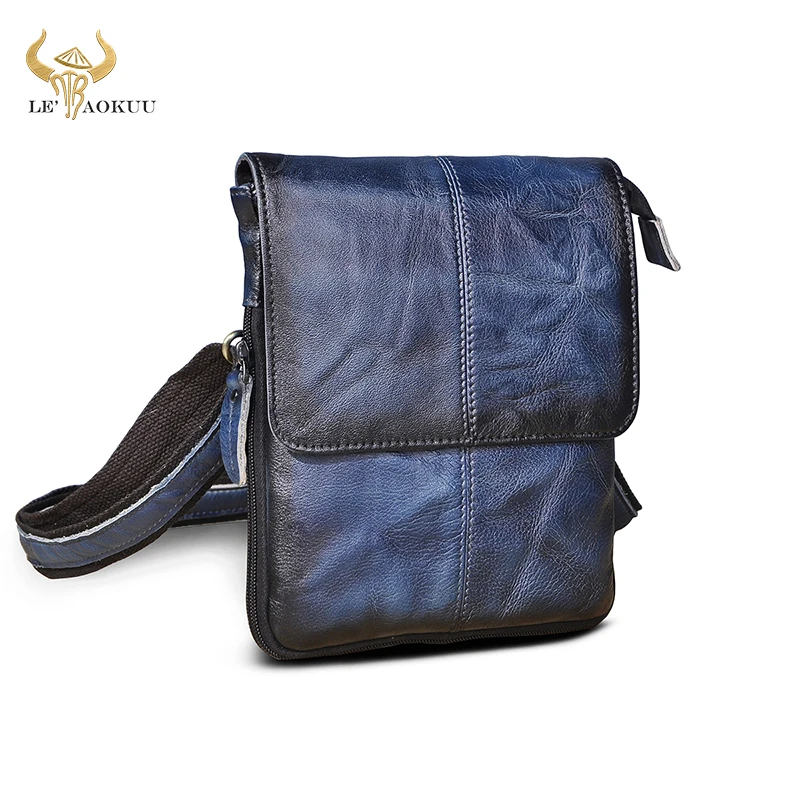 Винтажная маленькая синяя дорожная сумка-мессенджер из натуральной кожи для мужчин, дизайнерская забавная поясная сумка через плечо, 8713