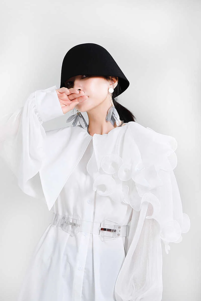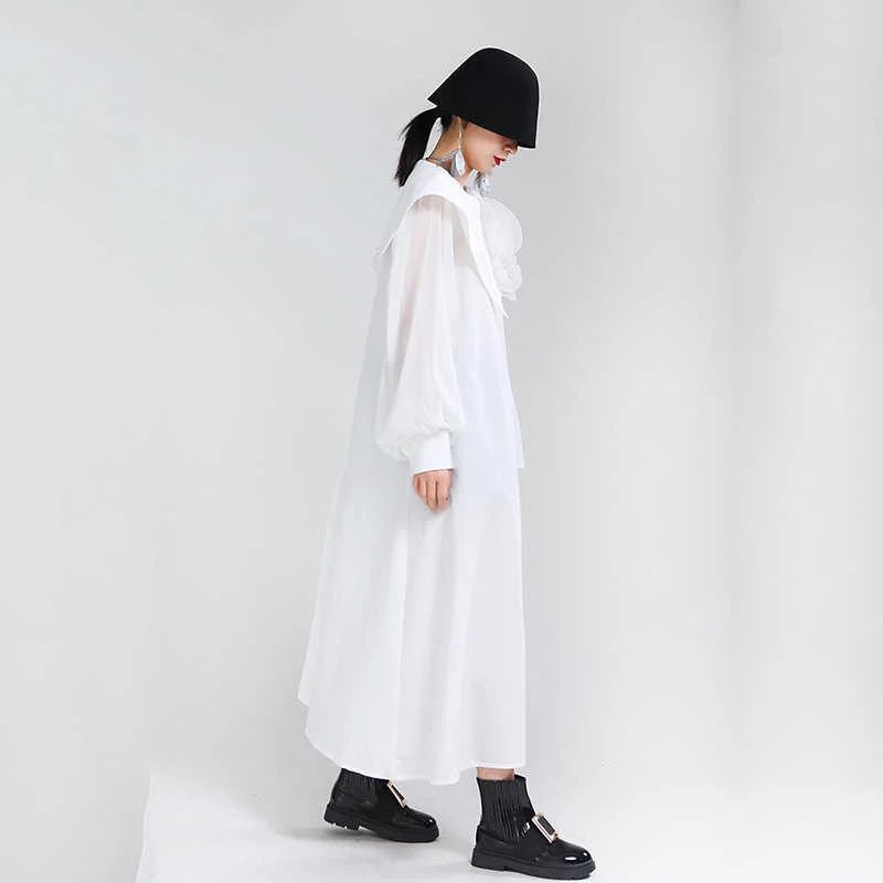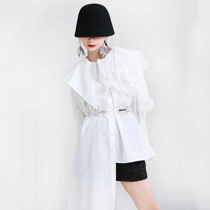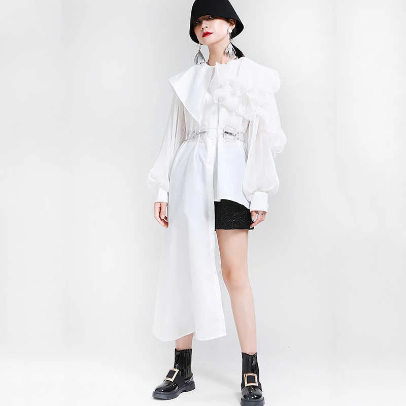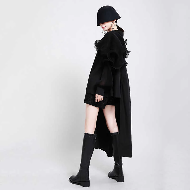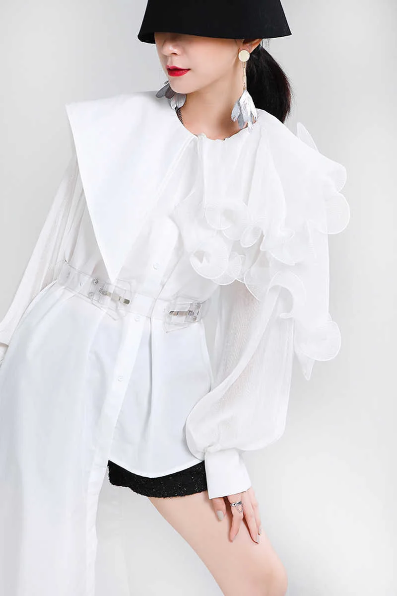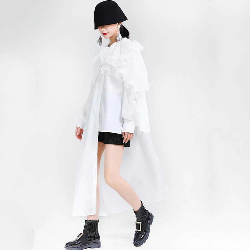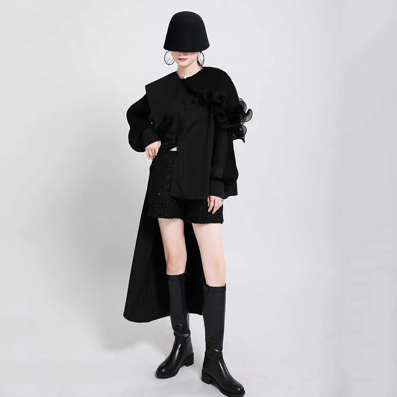 EAM женская зеленая Асимметричная блузка большого размера с оборками, новая свободная рубашка с отворотом и длинным рукавом, модная весенне-осенняя 2022 1DA218