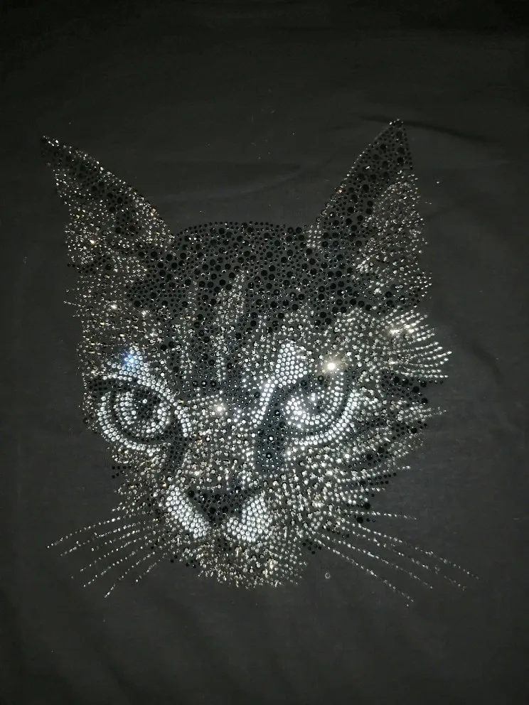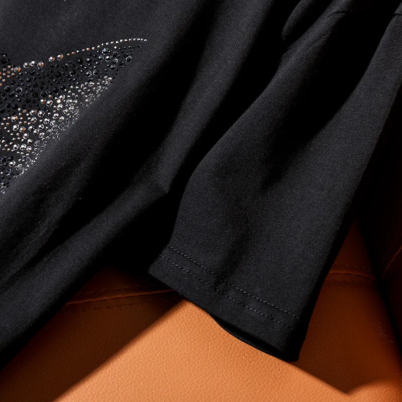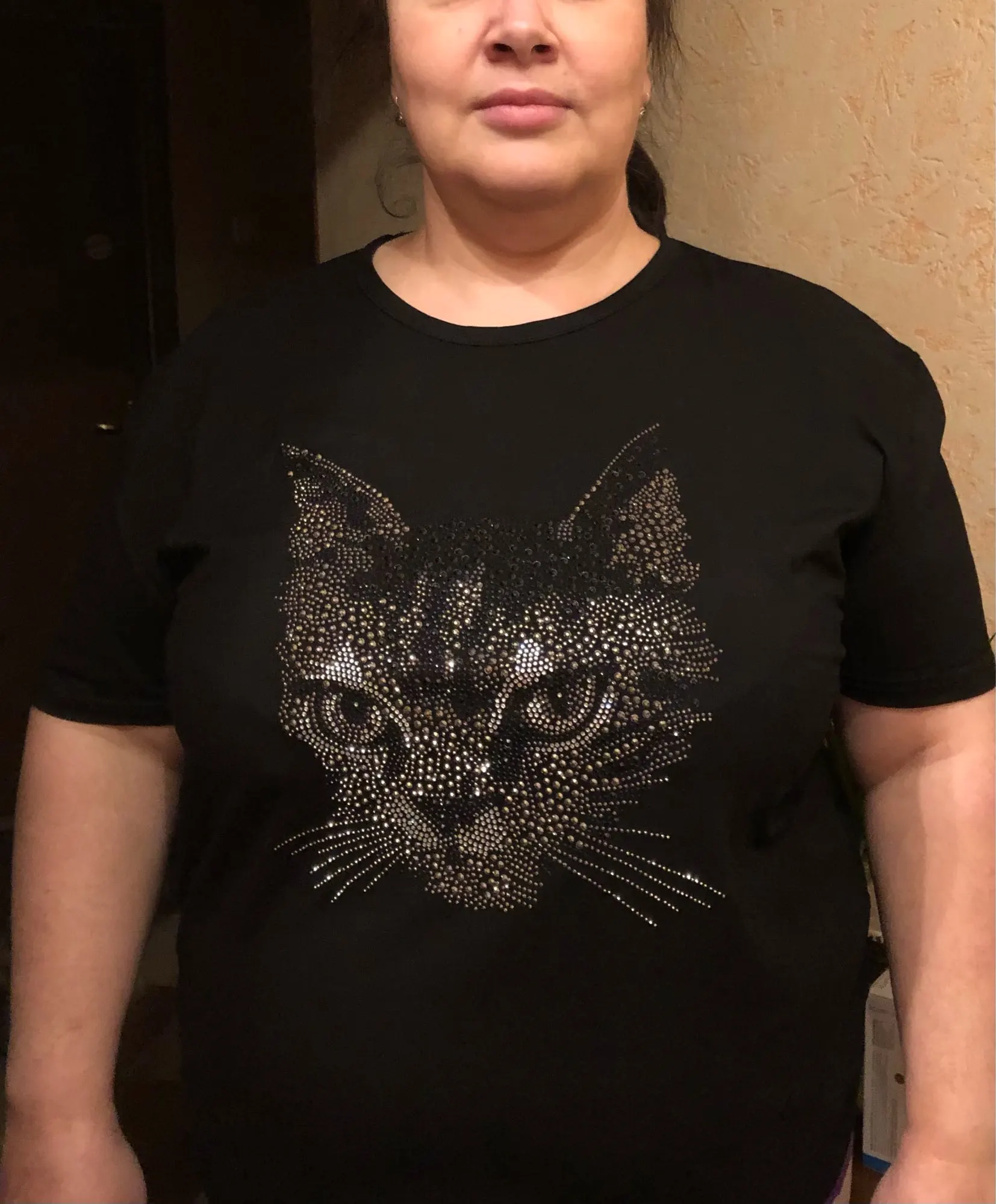 Лето 2021 года, новая модная свободная футболка с короткими рукавами для женщин, повседневная индивидуальность, с рисунком кота, горячие бриллианты, женские топы с круглым вырезом