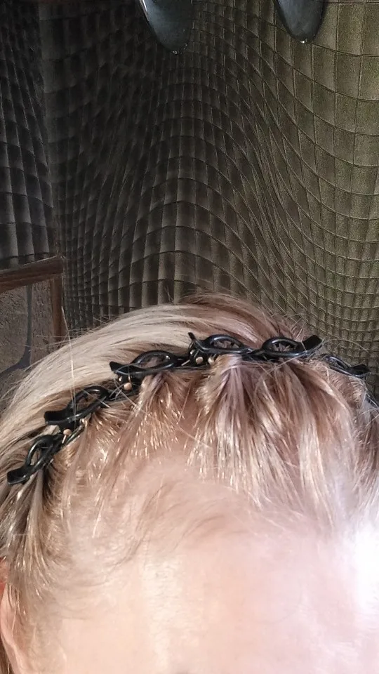 ободок интересный, на волосы средней длины будет удобно, для очень длинных волос надо приспособиться.
