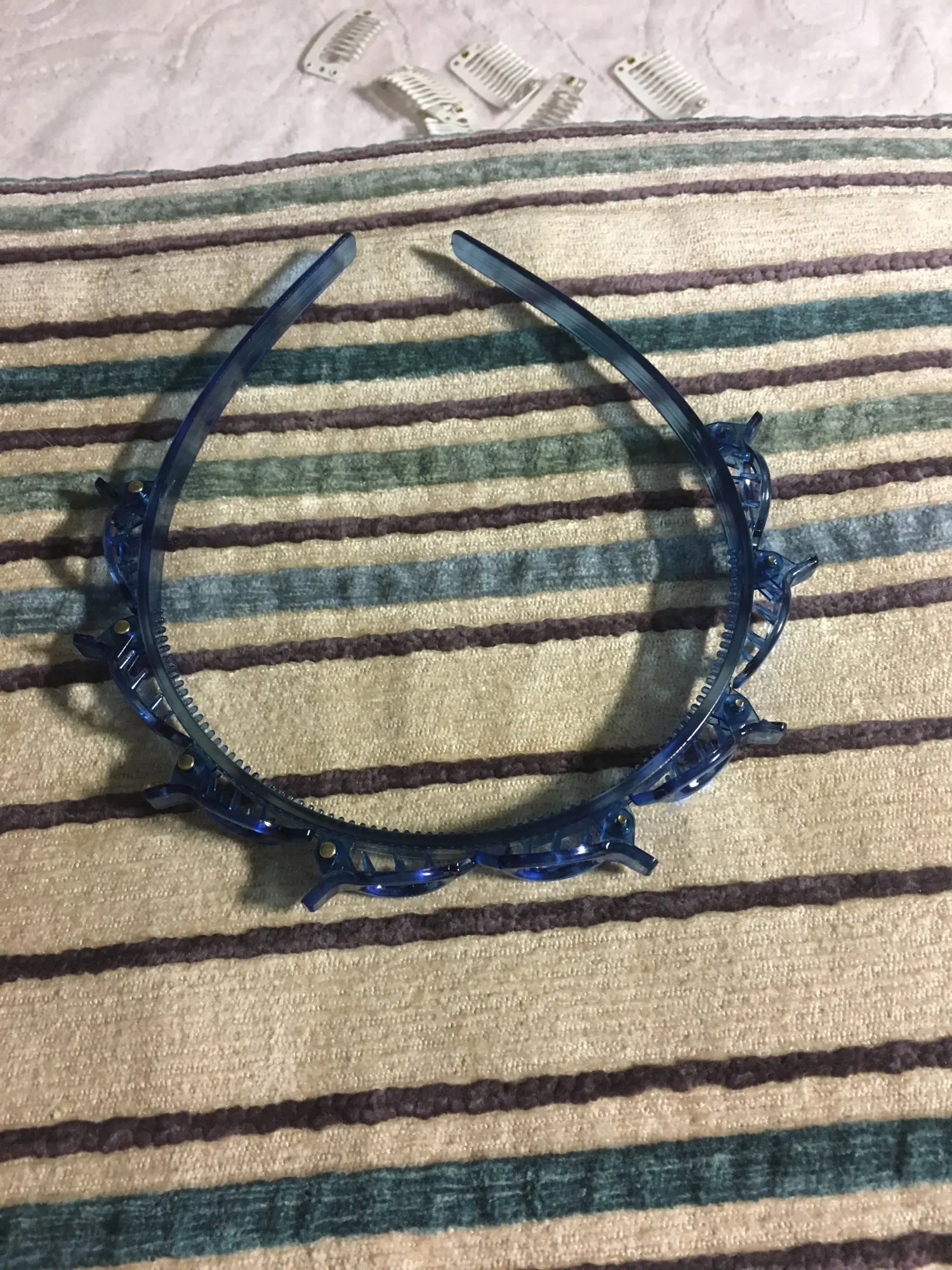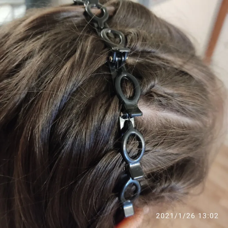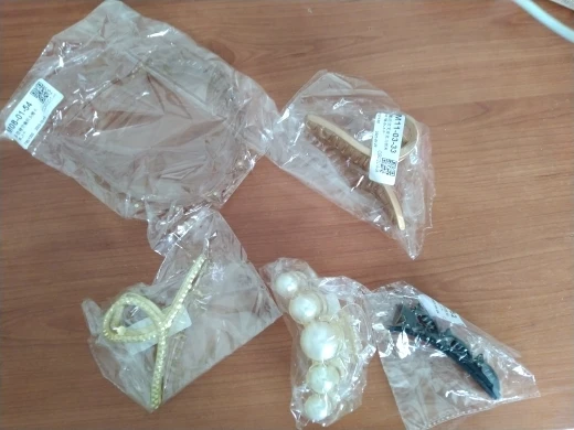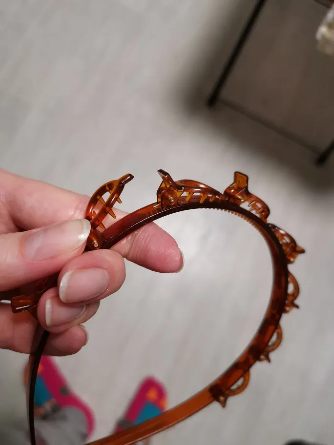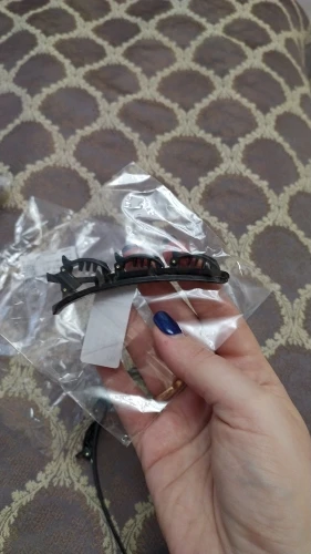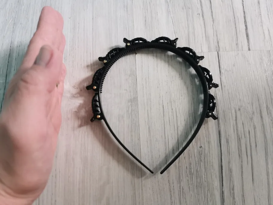 ободок неплохой, не давит на нормальную не маленькую голову). только он для очень густых волос, если у вас тонкие славянские волосы, надо полголовы вычесывать, и то вряд ли будут держаться. буду использовать дома, не задействуя прищепки. упакован плохо, просто в пупырышковый серый почтовый пакет