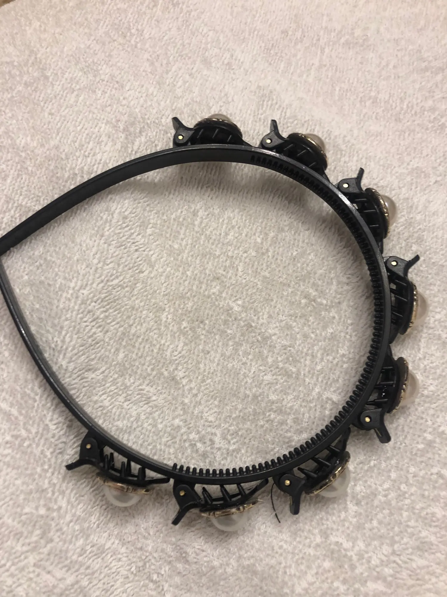 Классный ободок. Под детский размер голову. На большую голову не подойдёт. Сделан по принципу крабиков.