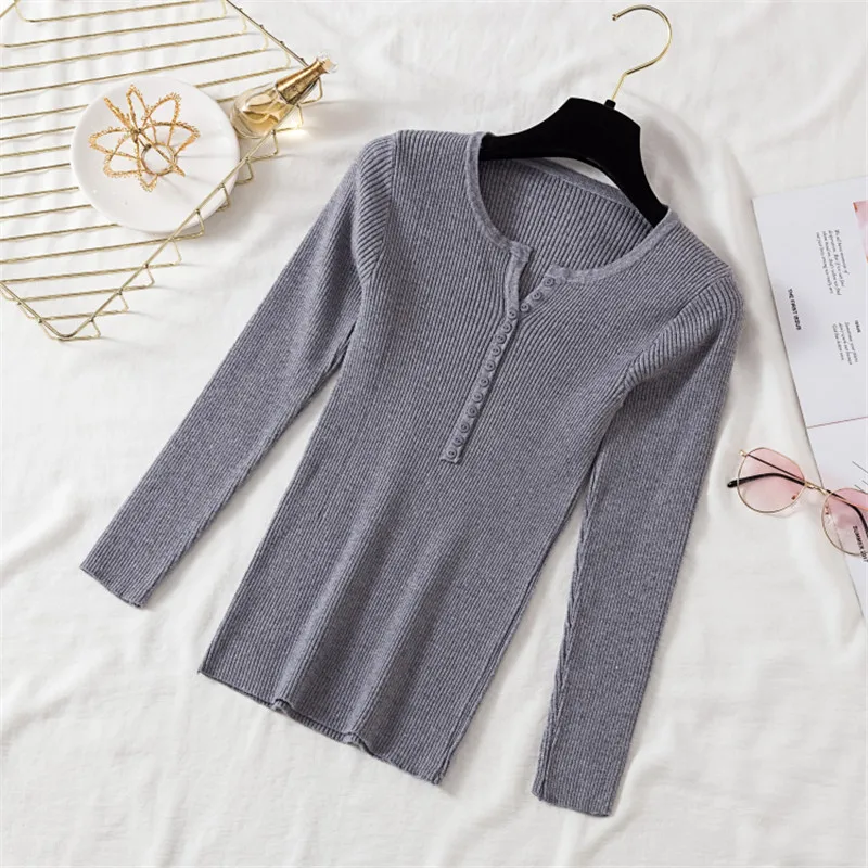 Свитер AOSSVIAO Женский, с пуговицами, с V-образным вырезом, Осень-...