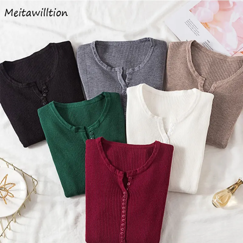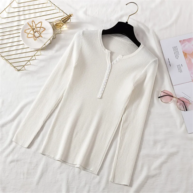 Пуловер женский трикотажный, с круглым вырезом и длинными рукавами, Осень-зима, 2020