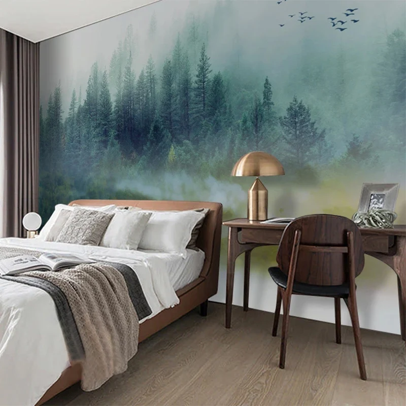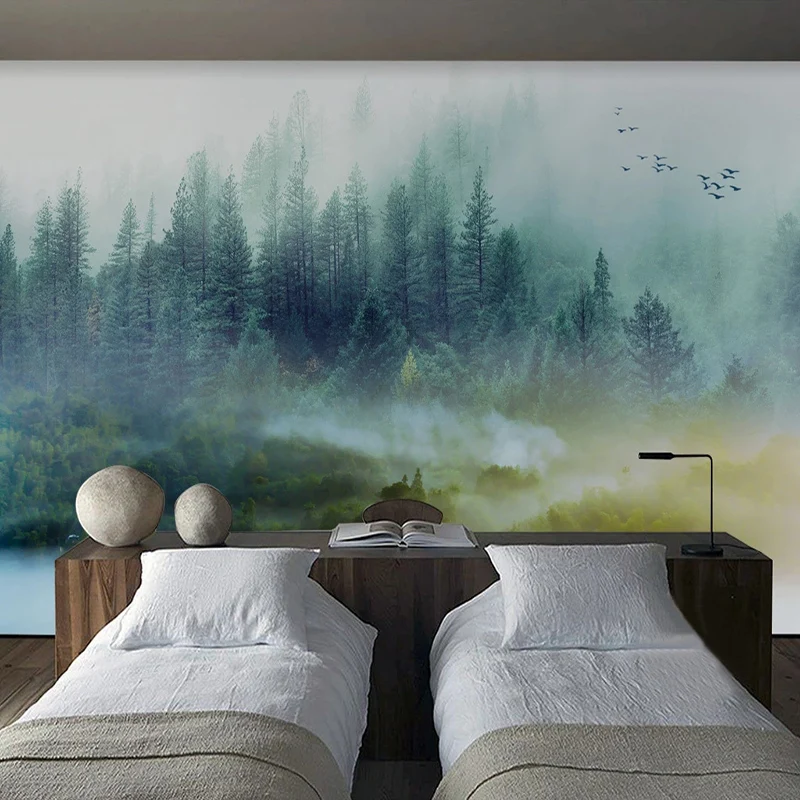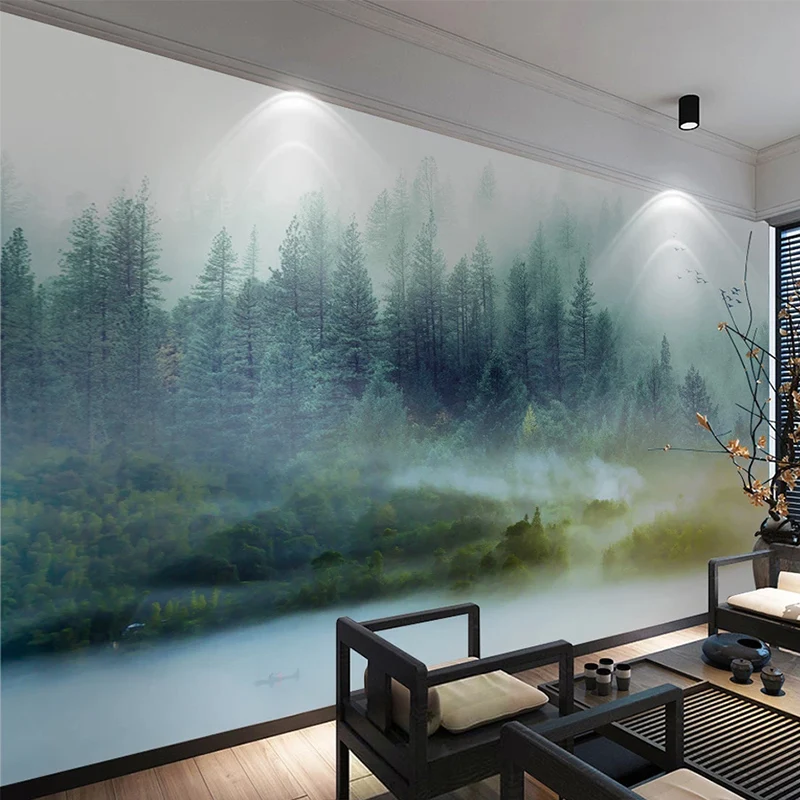 Самоклеящиеся 3D-обои на заказ, водонепроницаемые 3d-наклейки с чернилами, пейзаж, облако, лес, Фреска для гостиной, кабинета, домашний декор
