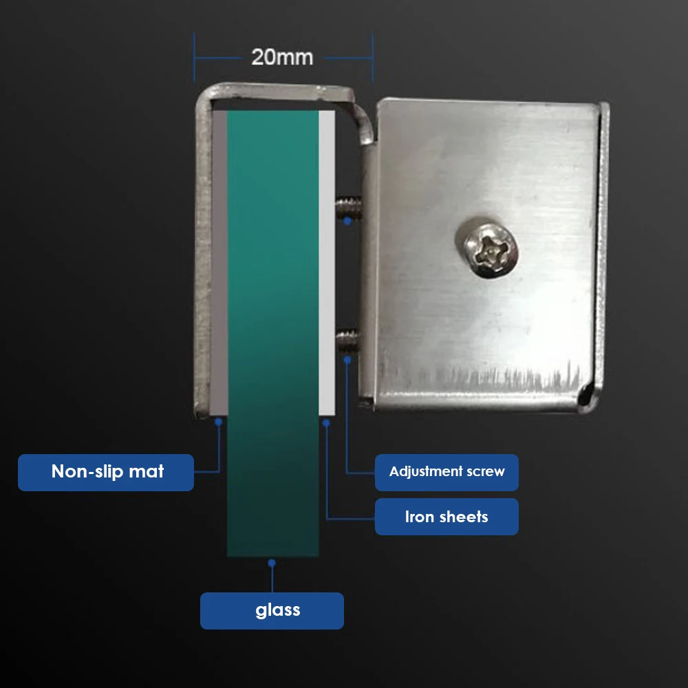 В зависимости от толщины стекла, ширину можно изменить, отрегулировав винт