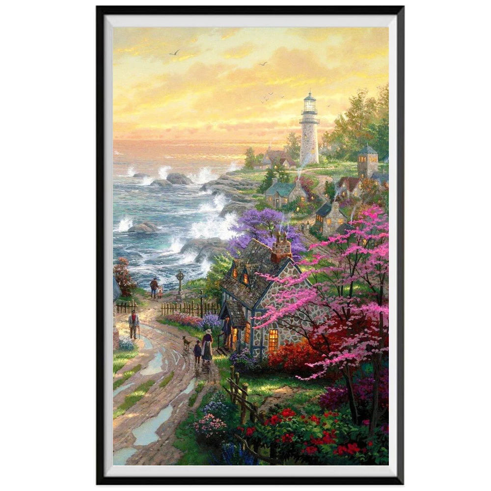 Пейзаж 5D алмазная живопись Полный алмаз морской пейзаж здание косм...