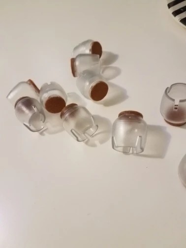 Превосходные силиконовые колпачки, покрытые маркой, чтобы избежать шума. Очень легко надеть на стулья