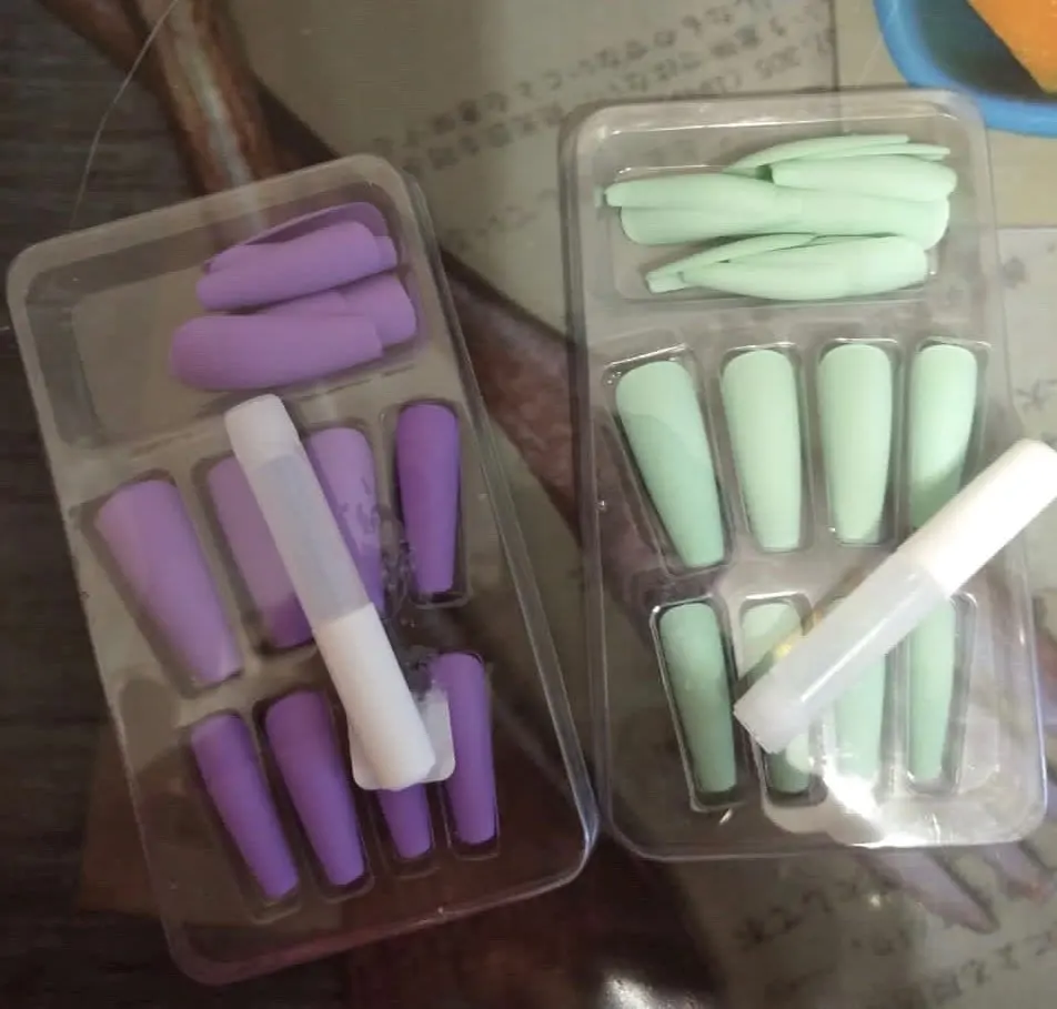 хорошие качественные накладные ногти. в наборе даже есть клей, который реально держит ногти. Единственное, для меня не подошла длина, но легко ее спилить