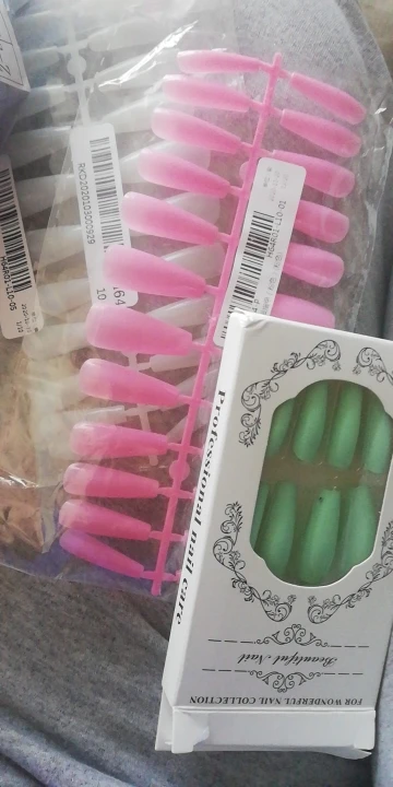 Всё пришло аккуратно . Много ногтей на всякий случай если сломаются . На конце очень плотные , что очень хорошо . Единственное , что хотелось бы , дак это то , что мало клейки . Всего на 10 пальцев .