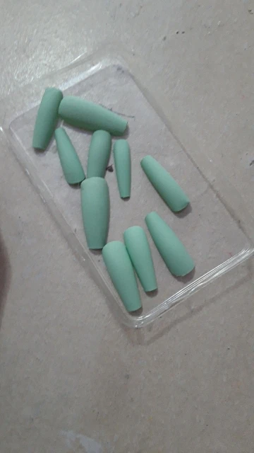 заказывала две упаковки, зеленые и нюдовые. нюдовые оочень отличаются от того, что на фото, а зеленые точь в точь. в одной из упаковок были прилипучки, которые очень трудно снимать (пленку), от этого потеряла одну такуб (плохая попытка была). в другой упаковке клей, буду пробовать их на каникулах. насчет доставки: продавец выходил на контакт, доставка отслеживалась. до Барнаула шла 14-15 дней) фото приклепила того самого «нюдового оттенка»