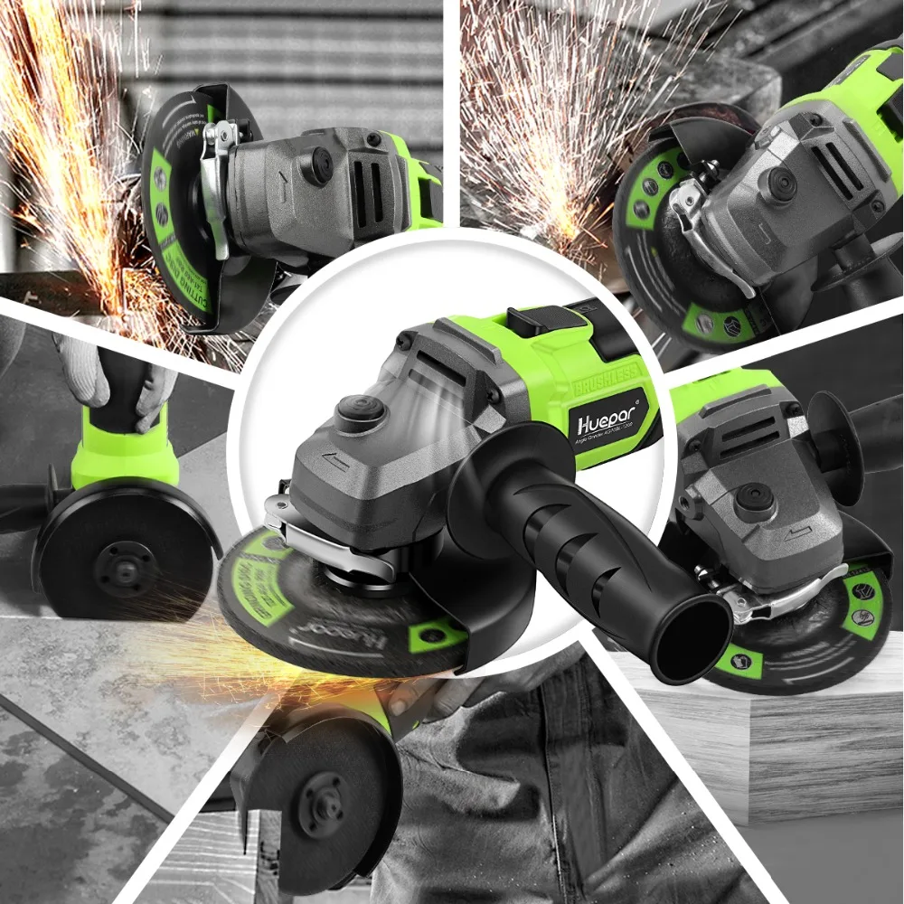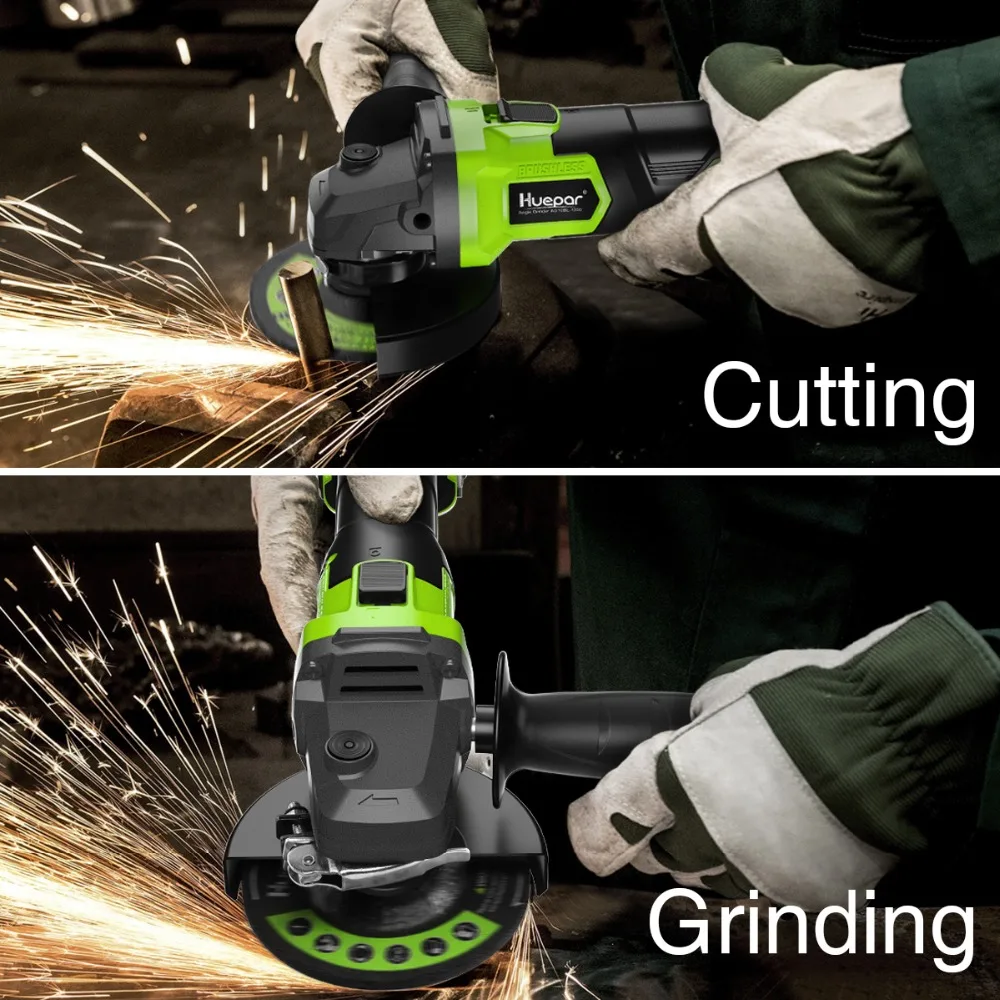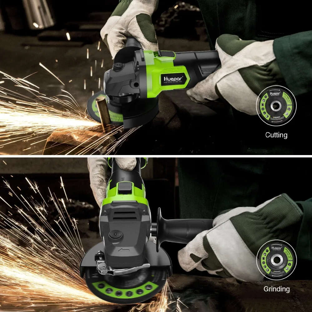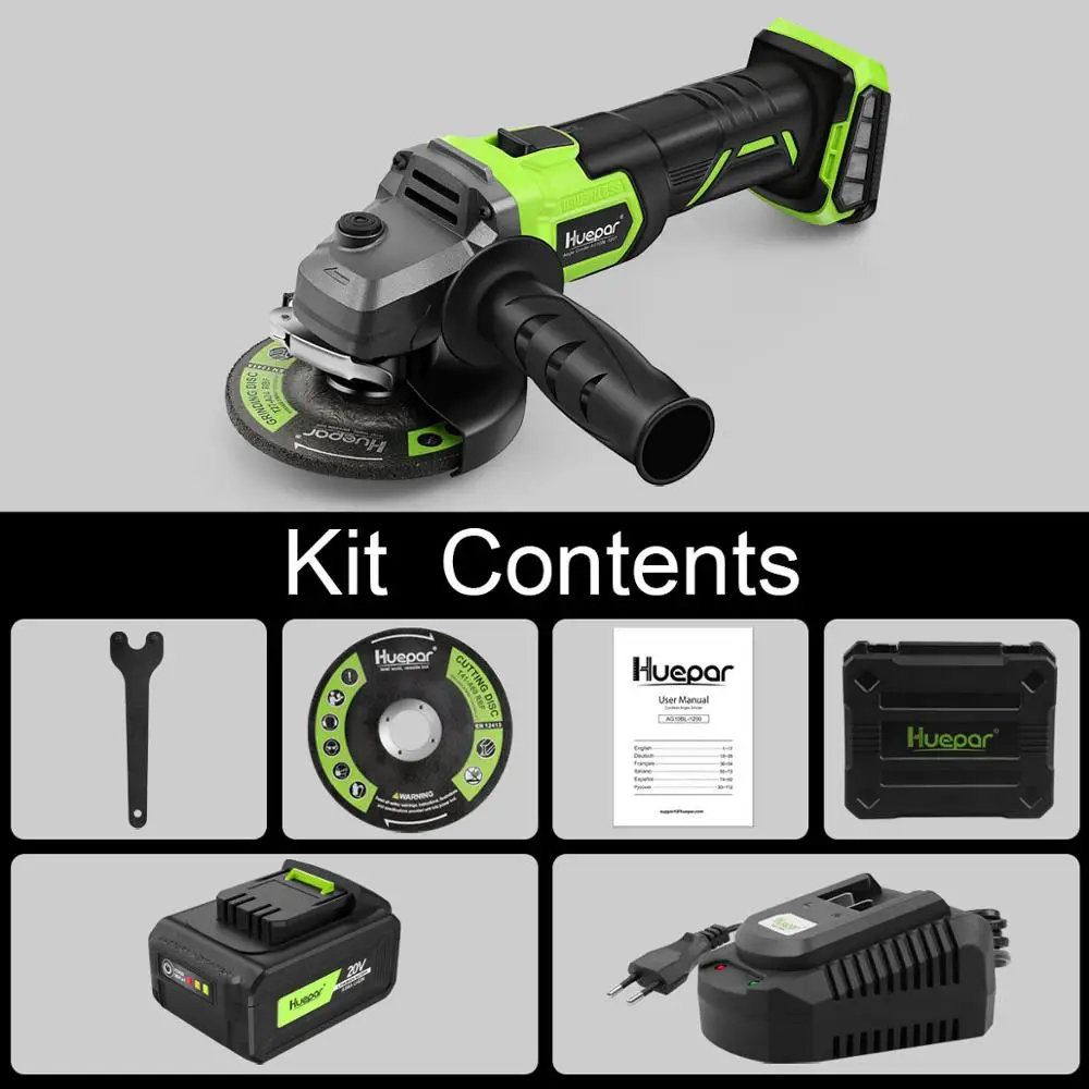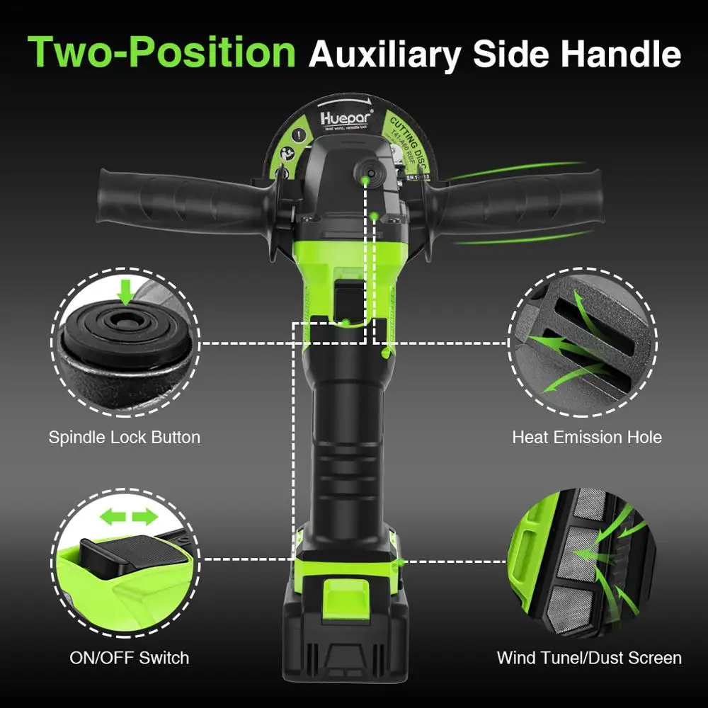Беспроводная угловая шлифовальная машина Huepar, 20 в, Ач, литий-ионная батарея, 8500PRM, для резки, шлифования, электрическая угловая шлифовальная машина, электроинструменты