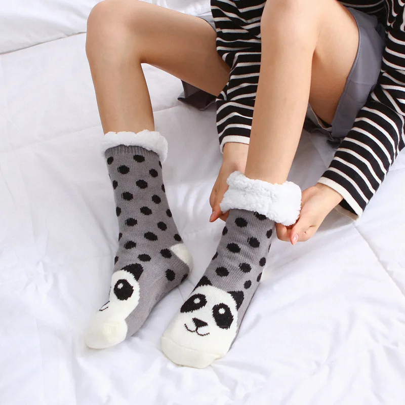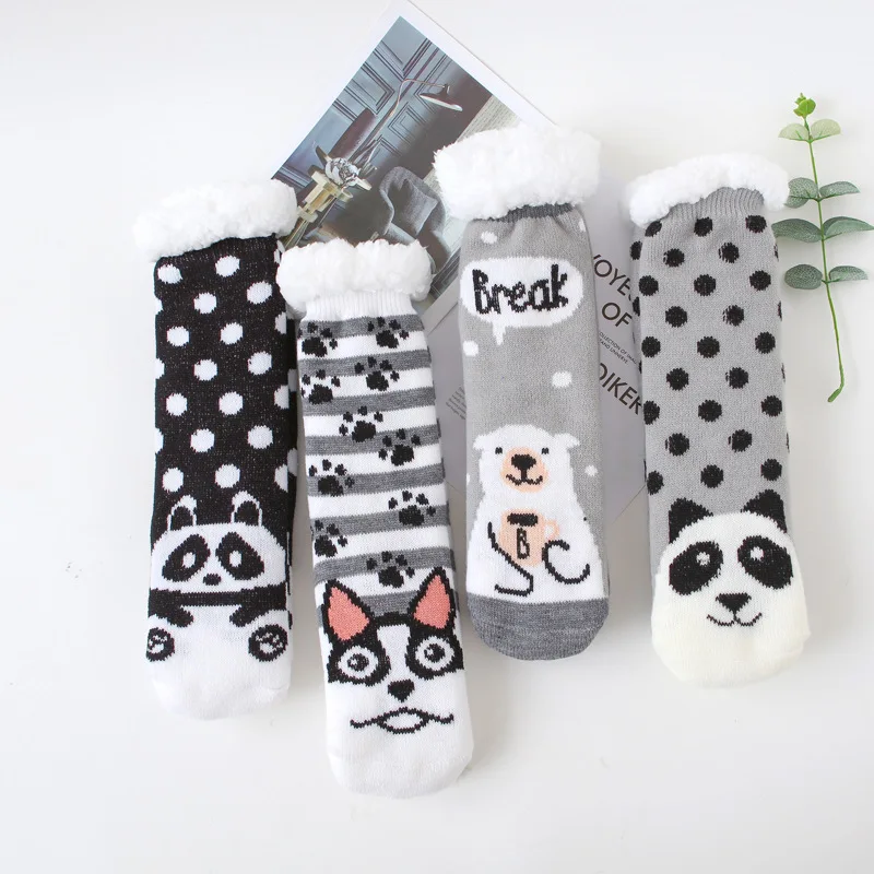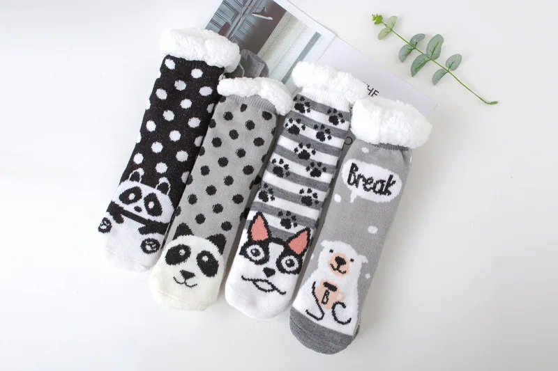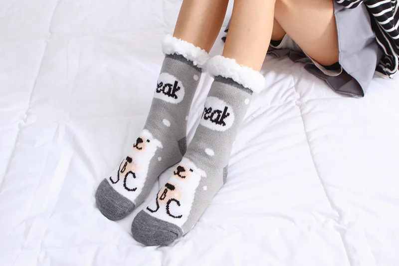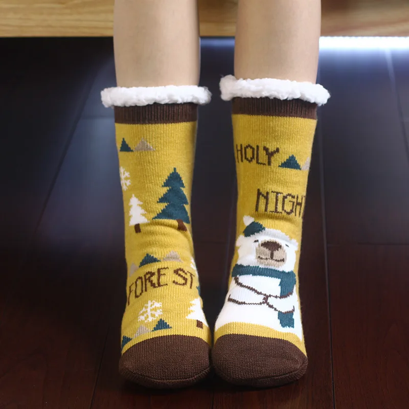 Женские зимние рождественские носки, хлопковые утолщенные Нескользящие теплые флисовые Носки с принтом, женские забавные носки в стиле Харадзюку, уличная одежда, 2021