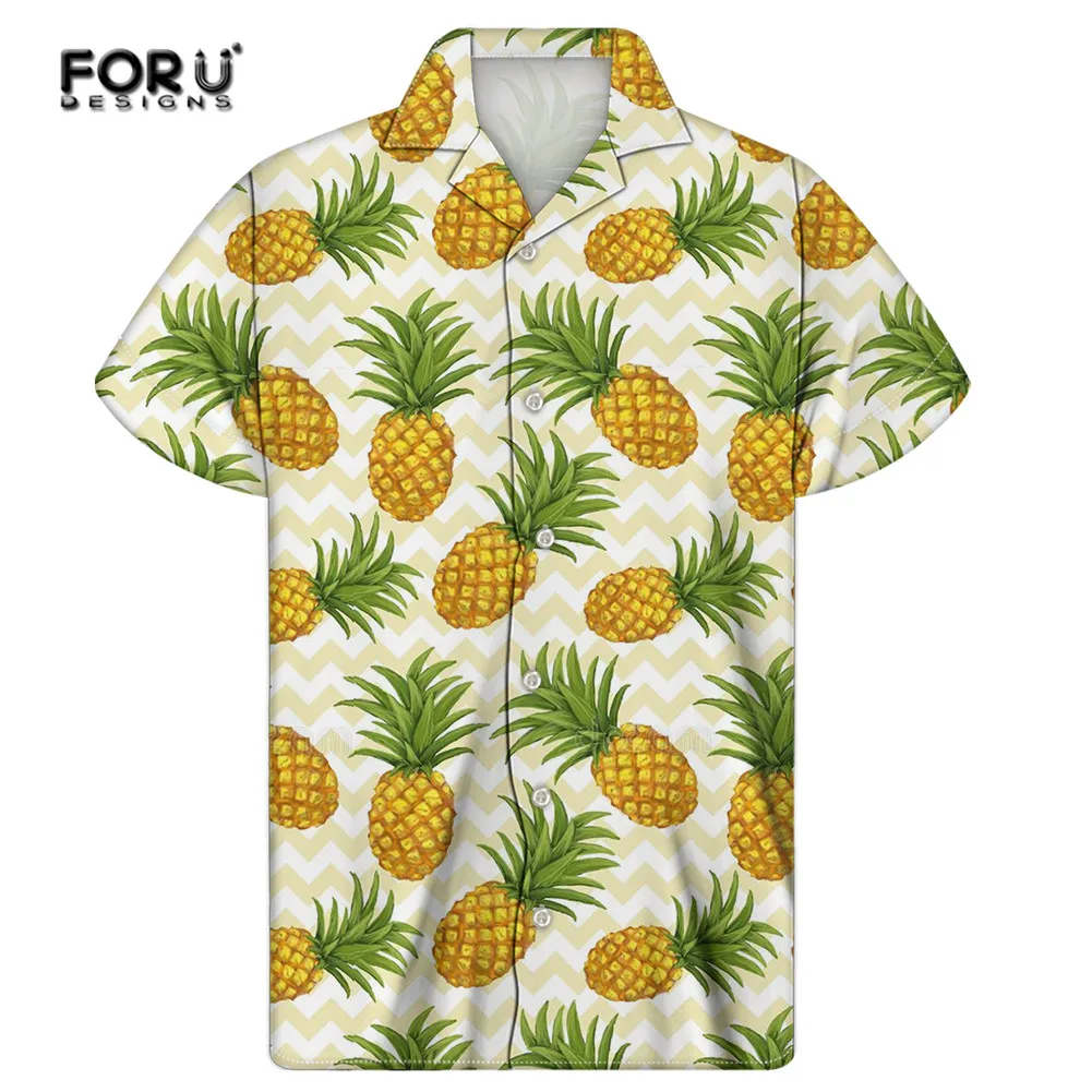 Повседневная мужская футболка FORUDESIGNS для мужчин, дизайнерские короткие пляжные Гавайские блузы из ананаса и арбуза