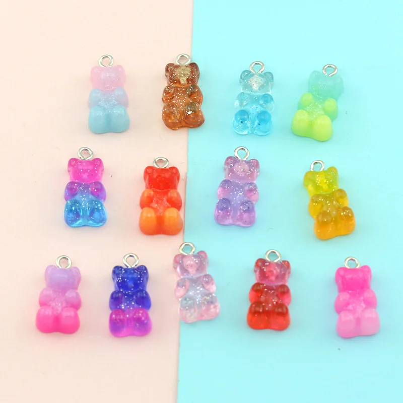 20 шт. Симпатичные Подвески из смолы в виде мишки из мастики с градиентом цвета сделай сам для изготовления сережек и ожерелий Airpods аксессуары для ключей оптовая продажа