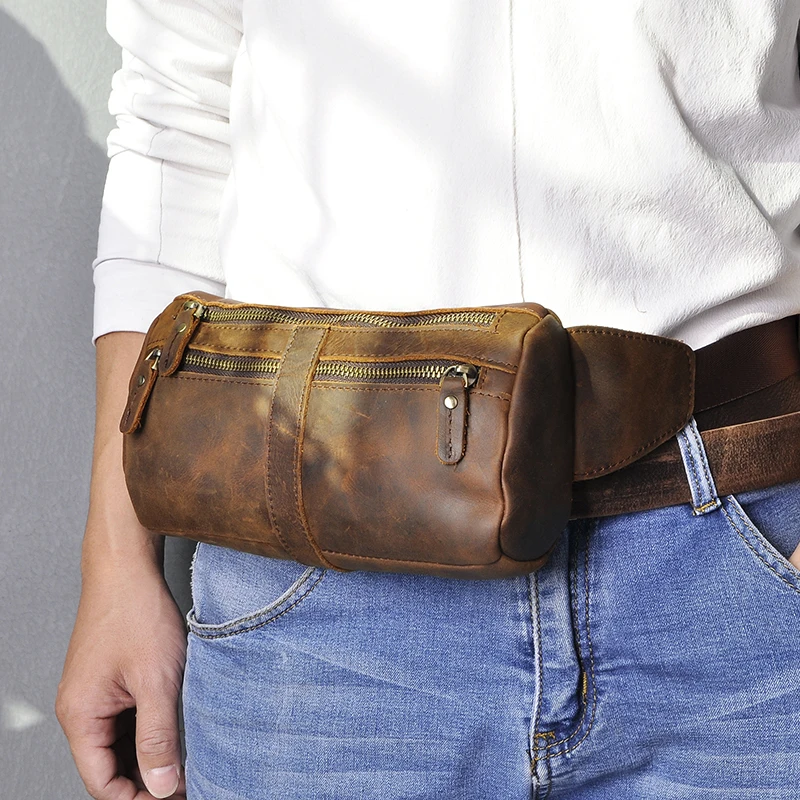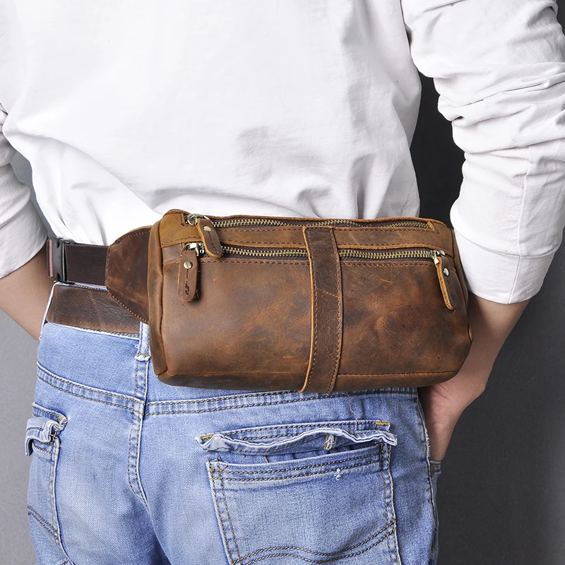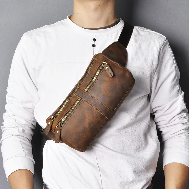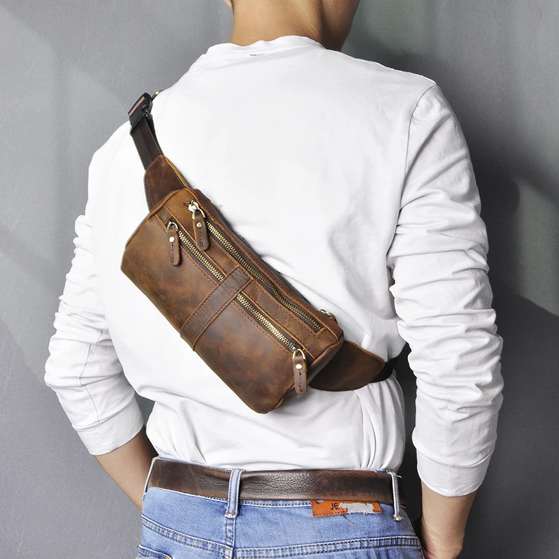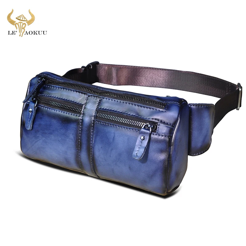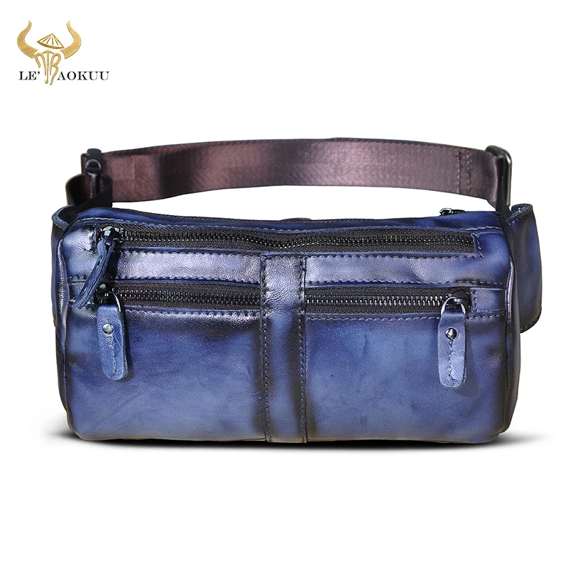 Мужская Дорожная сумка-Кроссбоди из натуральной коровьей кожи, синяя забавная поясная сумка-слинг в стиле ретро, нагрудная Сумка-бананка, 811-49