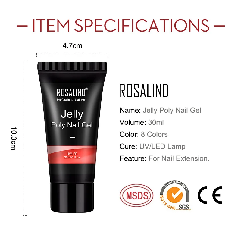Полигель для наращивания ногтей ROSALIND, Желейный Гель-лак, гибридные Лаки, быстрое наращивание ногтей, Гель-лак для дизайна ногтей, затвердевающий Светодиодный УФ-гель для маникюра