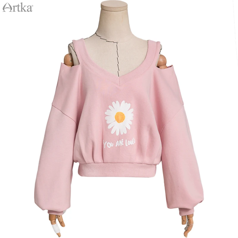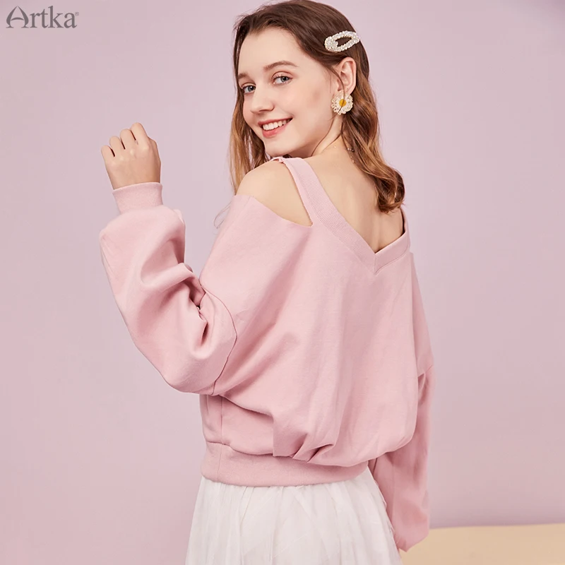 ARTKA 2020 Осень Новый 3 цвета Мода Письмо вышивка Толстовка Чистый хлопок o-образный вырез пуловер Повседневный свитер женский VA20108Q