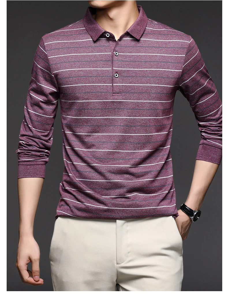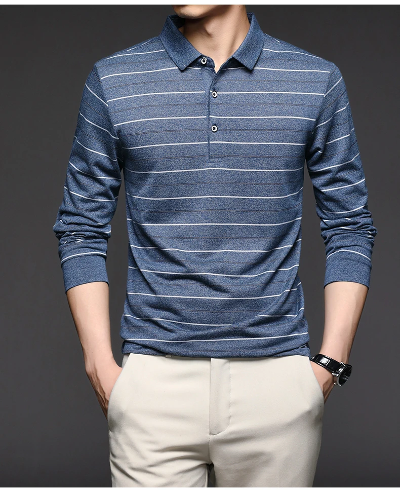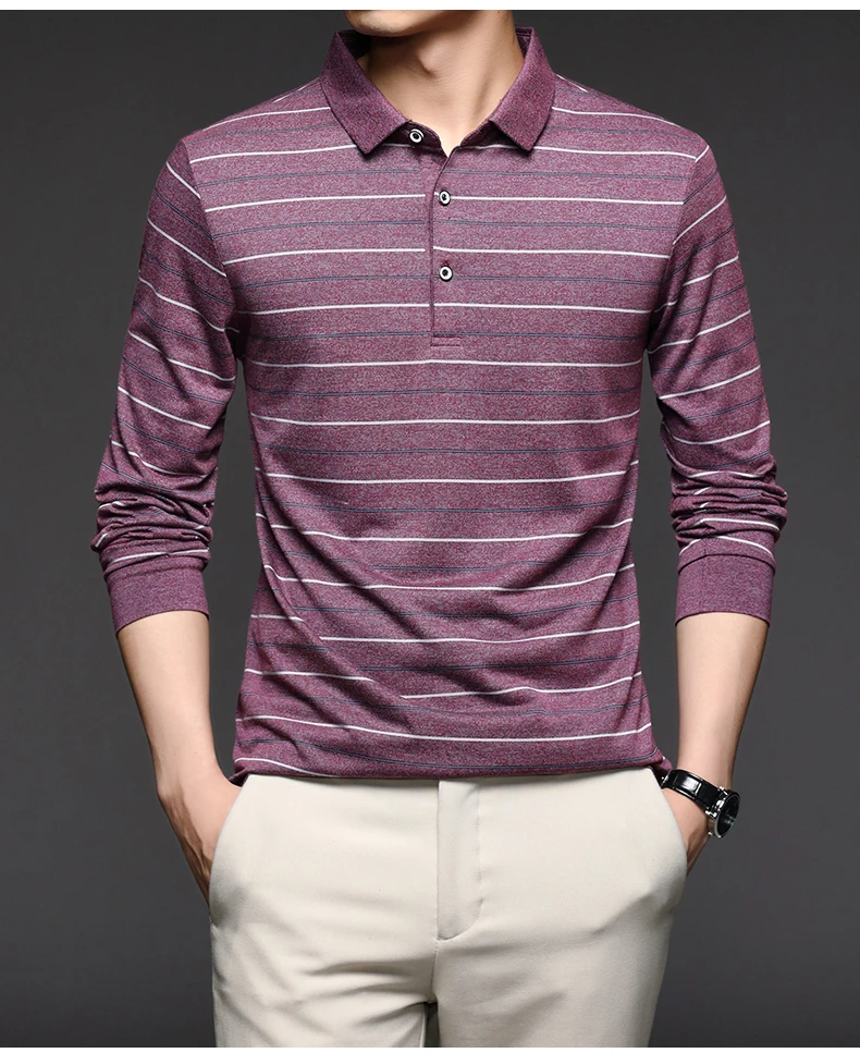 Мужская приталенная рубашка-поло, Классическая полосатая рубашка-поло с длинным рукавом, повседневная одежда, T938, осень 2021