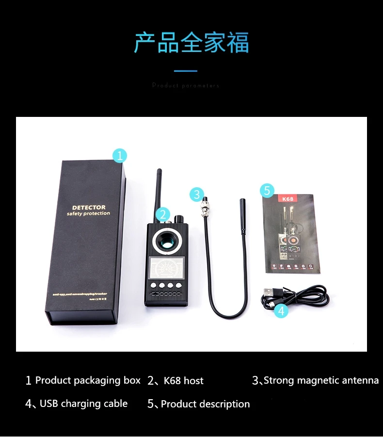 K-68 детектор Анти-шпион RF детектор скрытая камера детектор жуков GPS беспроводной сигнал сигнализации сканер обнаружения устройства [Военная-профессиональная версия]