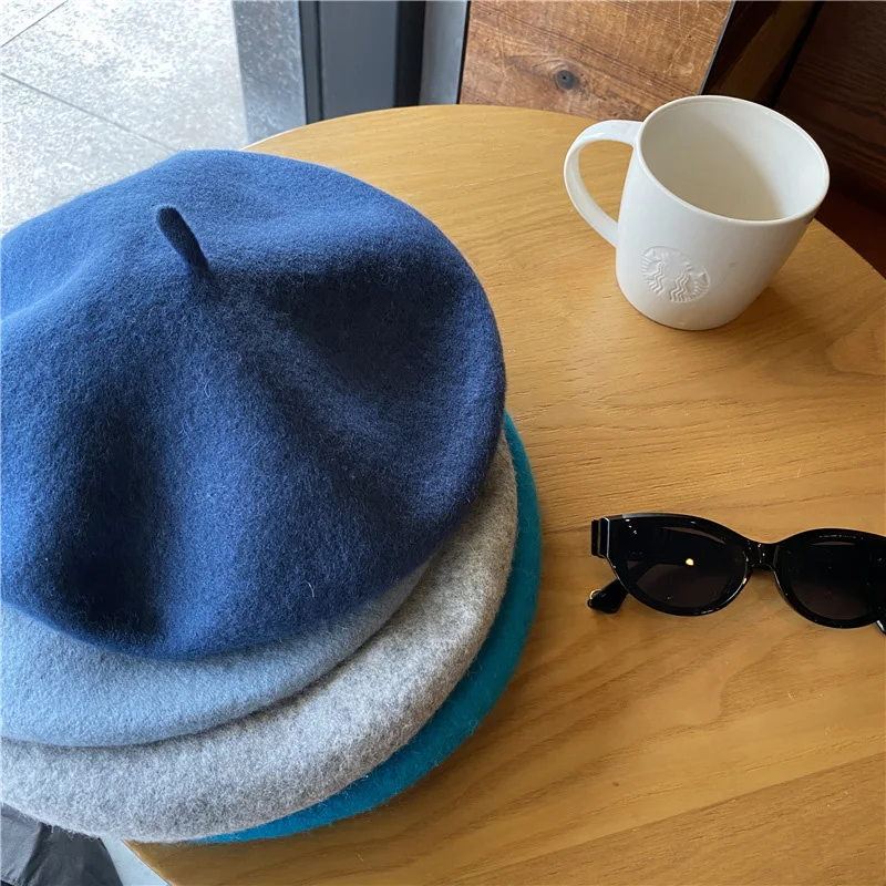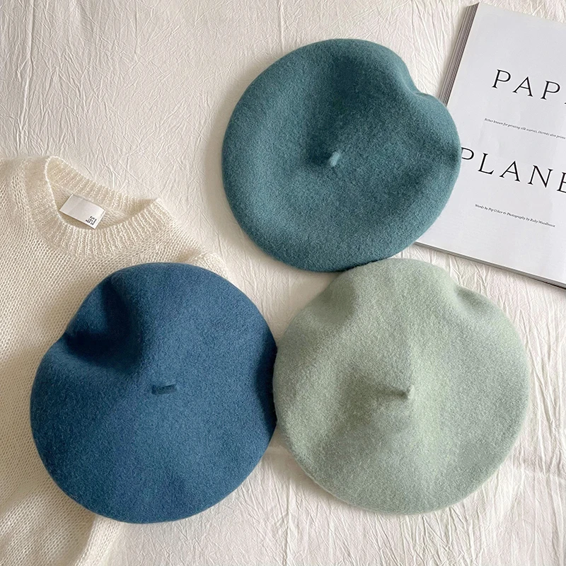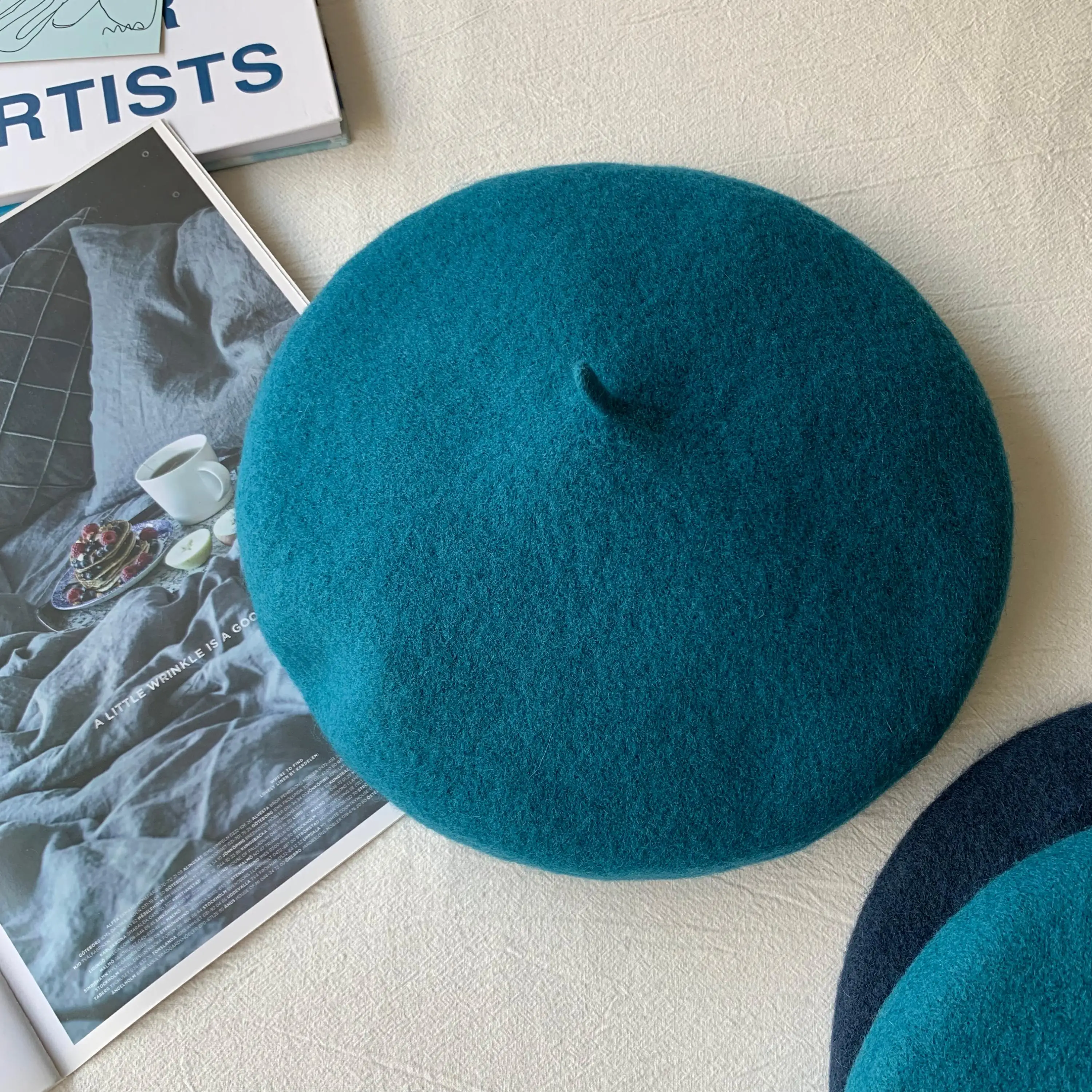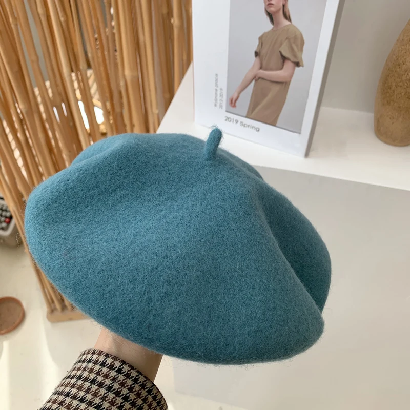 Женский трикотажный берет Luna Dolphin, голубой берет из 90% шерсти с глубокими углами, Осень-зима