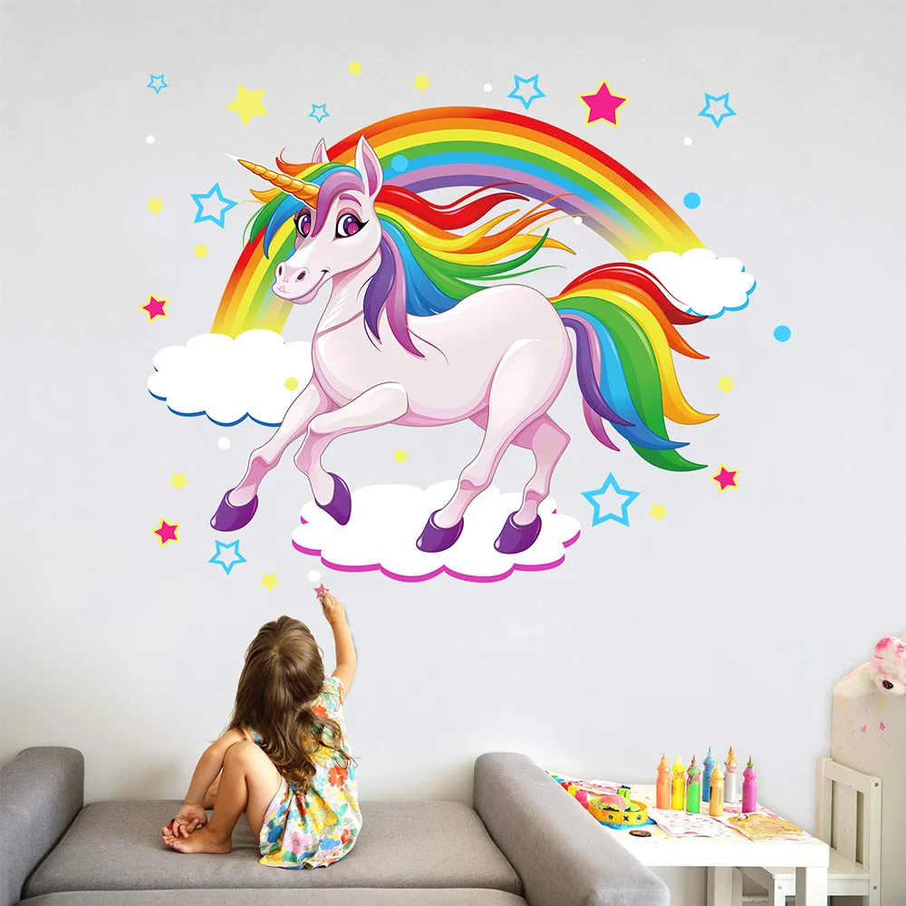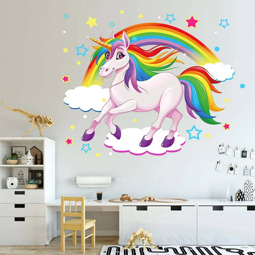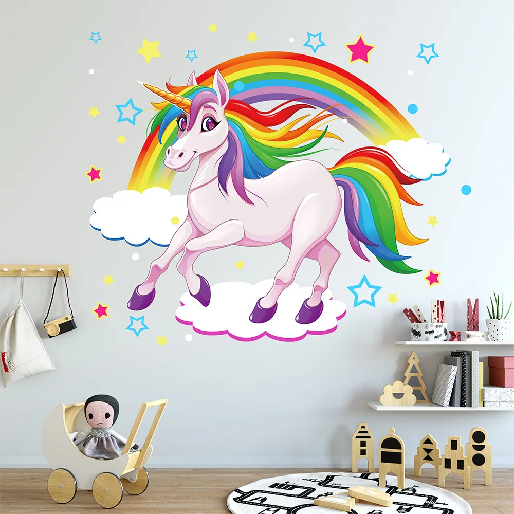 Новые Радужные облака единорог мультфильм экологические наклейки на стену детская комната украшение спальни