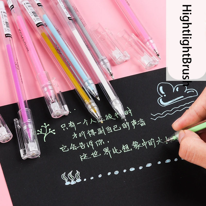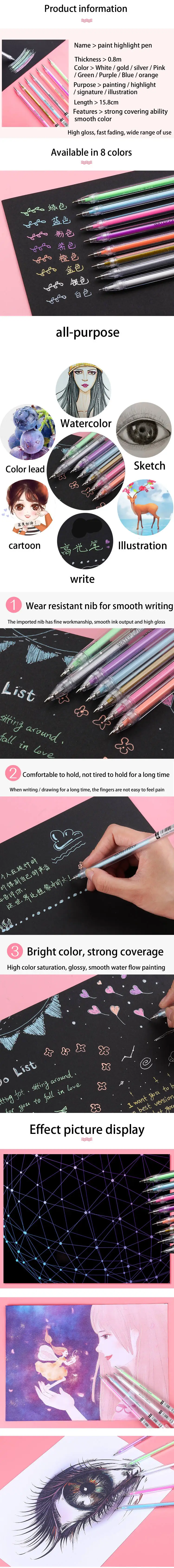 Ручка-хайлайтер 8 цветов, ручка с белыми линиями крючка, Золотая ручная роспись, черный картон, белая ручка для студентов, кисть для каракулей