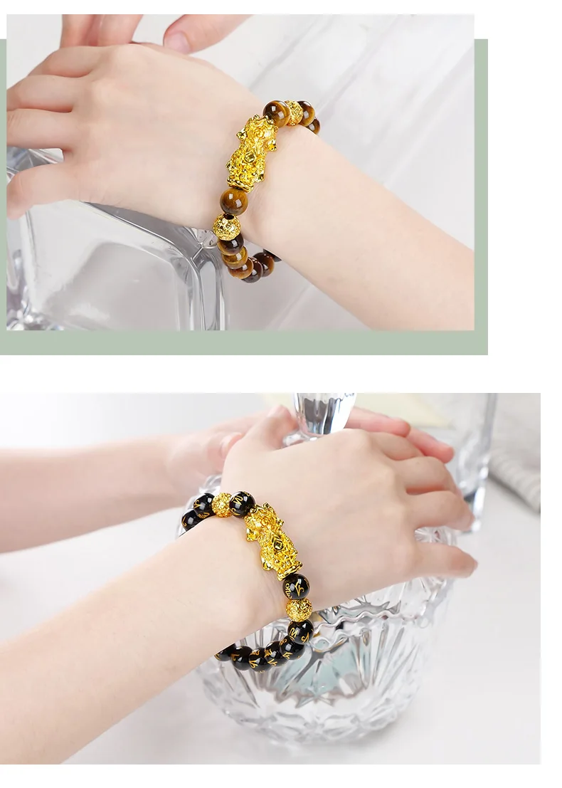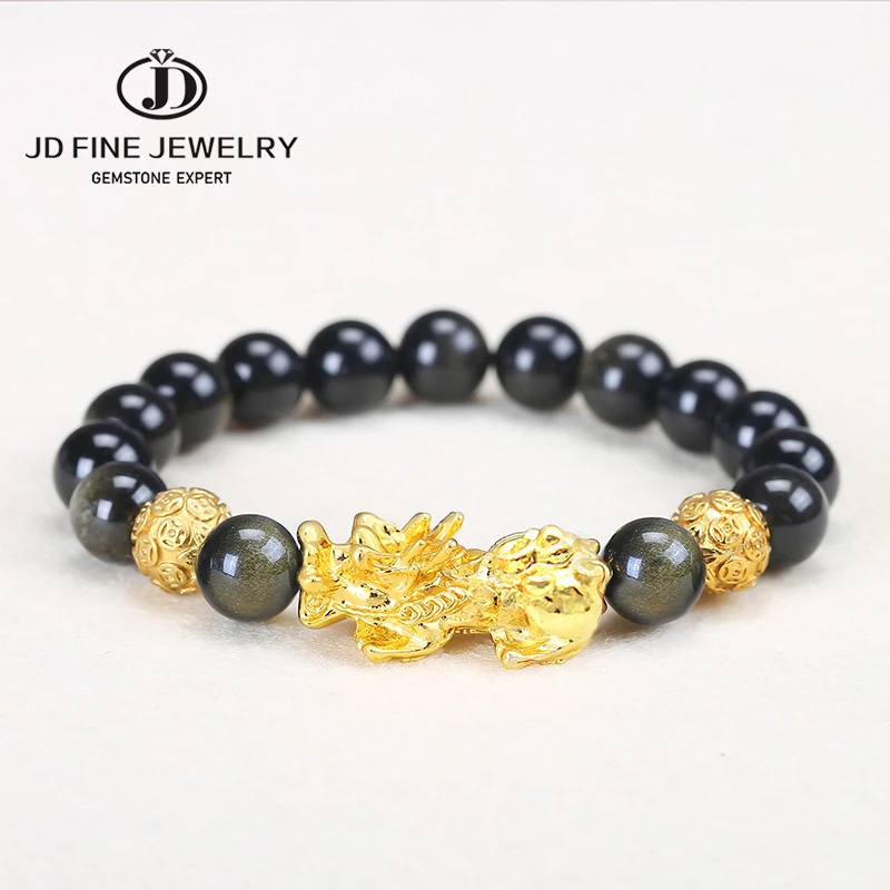 JD Feng Shui обсидиан камень бусы браслет для мужчин женщин мужчин унисекс-браслет золото черный Pixiu богатство и удачи женщин мужчин браслет