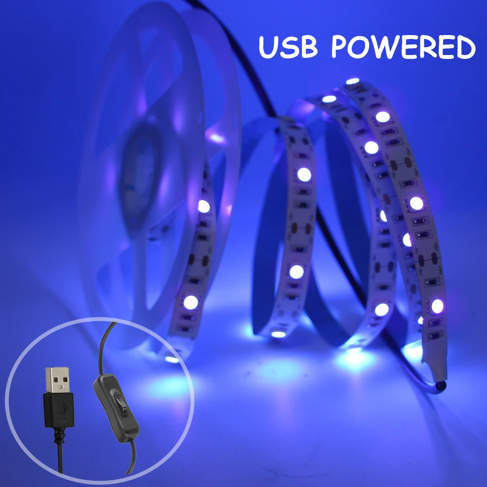 Ультрафиолетовая Светодиодная лента светильник 5050 5 В, неводонепроницаемая Светодиодная лента с USBпереключателем, лампа для полировки ногтей, 60 светодиодовм, 0,5 м, 1 м, 2 м, 3 м, 4 м, 5 м
