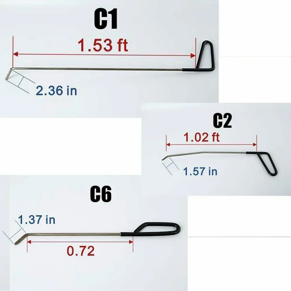 Описание Описание безболезненных инструментов для ремонта вмятин: Экономичный набор предназначен для того, чтобы вы начали работать в безболезненной области ремонта вмятин. Отлично подходит для начальной подготовки. Включает 3 стержня из высококачественного сплава Инструменты имеют гарантию на срок службы Безболезненный Набор для ремонта вмятин Starter-3-это результат того, что мы снова и снова спрашивали о том, что мы рекомендуем для набора инструментов, чтобы начать работу в безболезненной индустрии удаления вмятин. Этот набор из 3 предметов предлагает различные стили инструментов и советы, чтобы позволить технику научиться искусству безболезненного ремонта вмятин. Конечный набор хвоста Кита включает пять хвостов Кита из нашего главного набора. Это пять самых популярных безболезненных хвостов вмятин, которые мы продаем. Безболезненный Набор для ремонта вмятин Ultimate Whale Tail используется для безболезненного удаления вмятин и отлично подходит для безболезненного ремонта вмятин. Резиновый молоток: Два различных резиновых твердого покрытия, твердый металлический корпус и головка. В общей сложности Длина: 24,5 см Молоток имеет большой вес, но не будет ухудшать то, над чем вы работаете. Отлично подходит для фиксации автомобильного корпуса, ювелирных изделий, часов, оружейной и перезагрузки. И так далее Молоток имеет большой вес, но не будет ухудшать то, над чем вы работаете. Отлично подходит для фиксации часов, оружия и перезагрузки. Дешево тоже. Действительно трудно накрутить что-то такое простое, как молоток POM Tap Down: Различные формы головы для разных вмятин. Материал: помпон (полиформальдегид), этот материал лучше, чем нейлон. Длина каждого составляет 4,0 дюйма; Вал Ширина каждого составляет 0,5 дюйма Острый наконечник для острых высоких пятен, тусклый наконечник для коронок и линий тела Алюминиевый кран вниз: Алюминиевый винт с наконечником, эргономичный дизайн, новое удаление вмятин, безболезненный быстрый ремонт Разработан с 2 шт. головным помпоном, для предотвращения царапин окрашенных поверхностей-различные формы головы для разных вмятин Подходит для вмятин всех видов плоского металла, таких как поверхность автомобильной металлической пластины и металлическая пластина стиральной машины В комплект входит: C1 - 1.53ft длина, 2,36 дюймов носочной частью. C2 - 1.02ft длина, 1,57 дюйма носок. C6-0,72 фута длина, 1,37 дюйма носок.