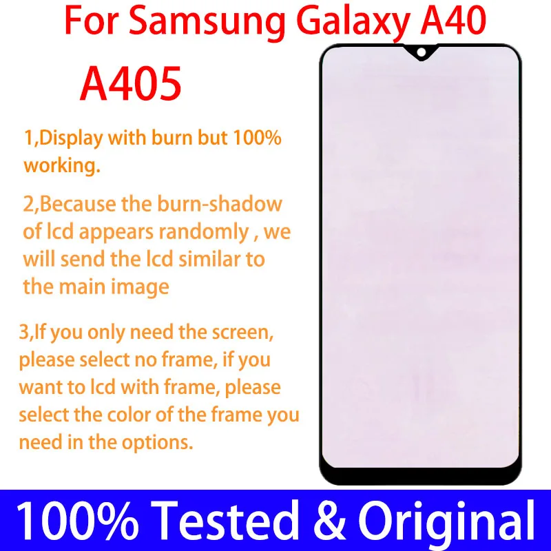 100% Оригинальный ЖК-дисплей A40 для SAMSUNG Galaxy LCD A40 A405 A405F дисплей + сенсорный экран дигитайзер в сборе с burn shadow