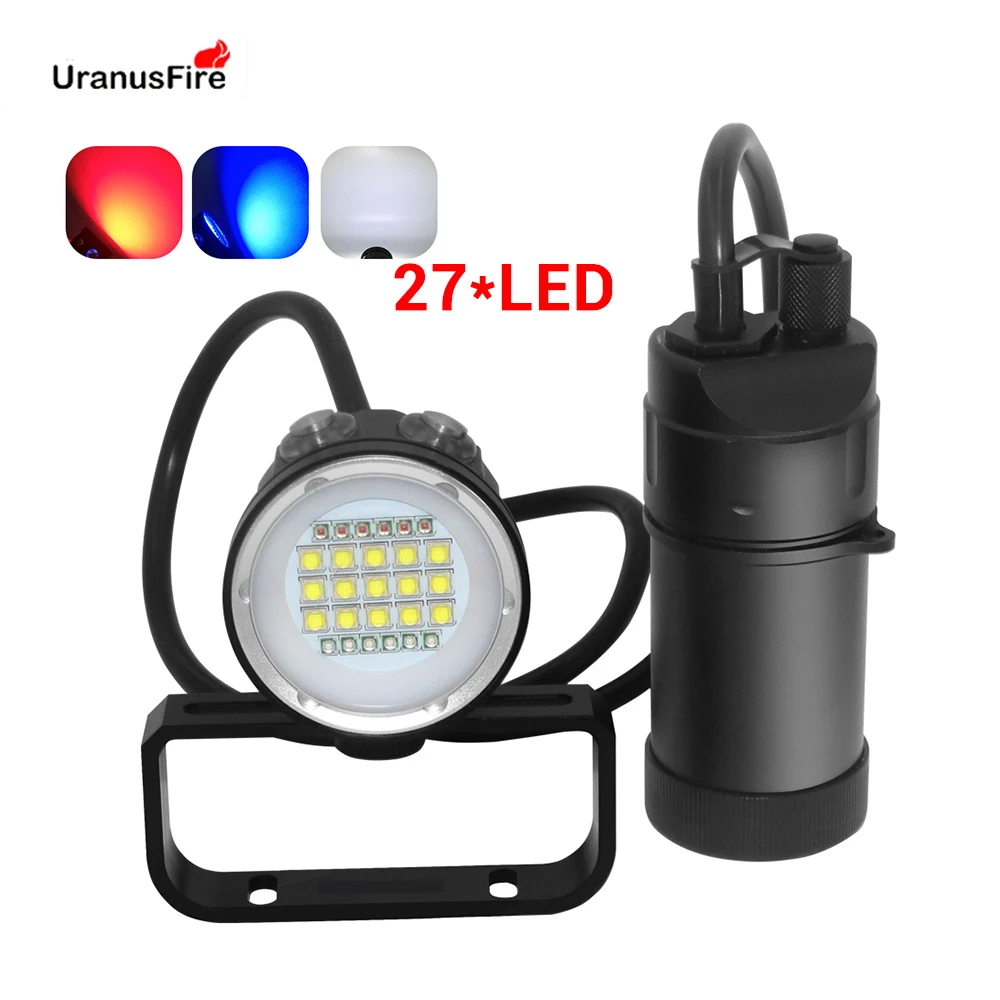 Подводсветильник фонарь для дайвинга XM L2, перезаряжаемый с 100 светодиодами, 27 Светодиодный одов, водонепроницаемость 18650 м