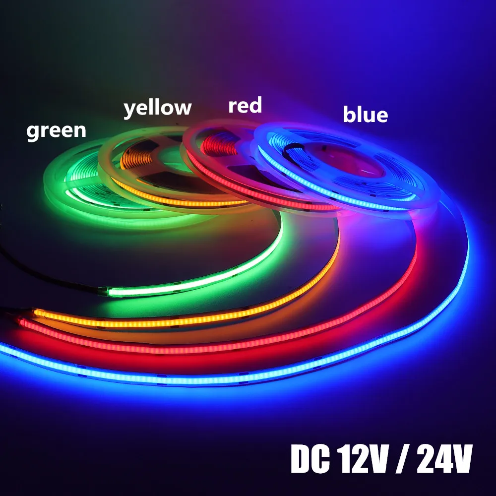 Светодиодная лента COB, 12 В, 5 м, гибкая линейная лента высокой пл...